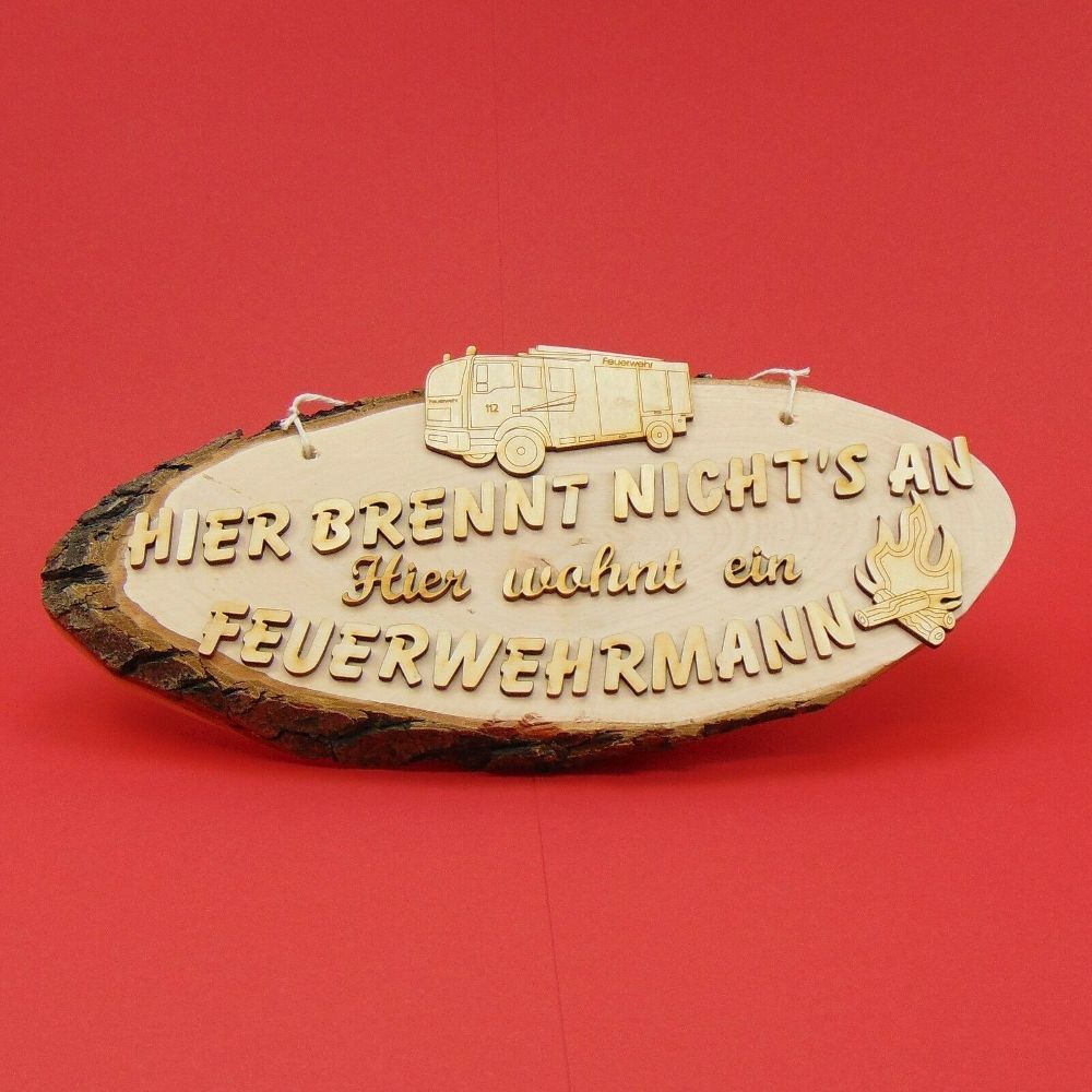 Feuerwehrmann Geschenk für Männer Baumscheibe Holz Hier brennt nicht´s an