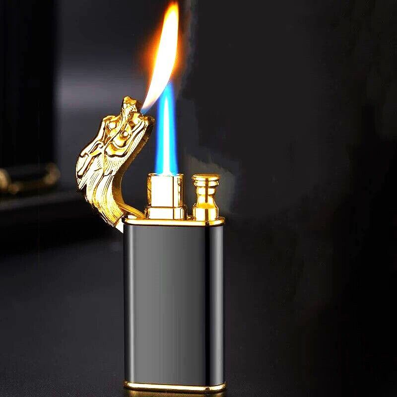 Drachenkopf winddichtes Feuerzeug-Kreativer Drache 3 Farben zur Auswahl, Gold, Schwarz oder Blau Doppelfeuerzeug-Jet Flamme offenes Feuer winddicht Feuerzeug Doppel Blaue Flamme Metall Feuerzeug kreativ Direkt Winddicht Offenes Feuer Umwandlung Feuerzeug Winddichtes Design, sehr praktisch und tragba