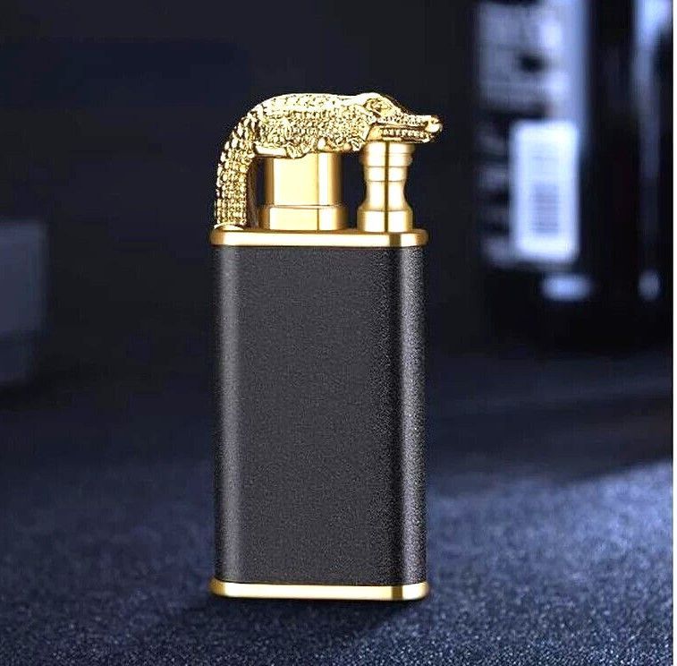 Krokodilkopf winddichtes Feuerzeug-Kreatives Krokodil 3 Farben zur Auswahl, Gold, Schwarz oder Blau Doppelfeuerzeug-Jet Flamme offenes Feuer winddicht Feuerzeug Doppel Blaue Flamme Metall Feuerzeug kreativ Direkt Winddicht Offenes Feuer Umwandlung Feuerzeug Winddichtes Design, sehr praktisch und tra