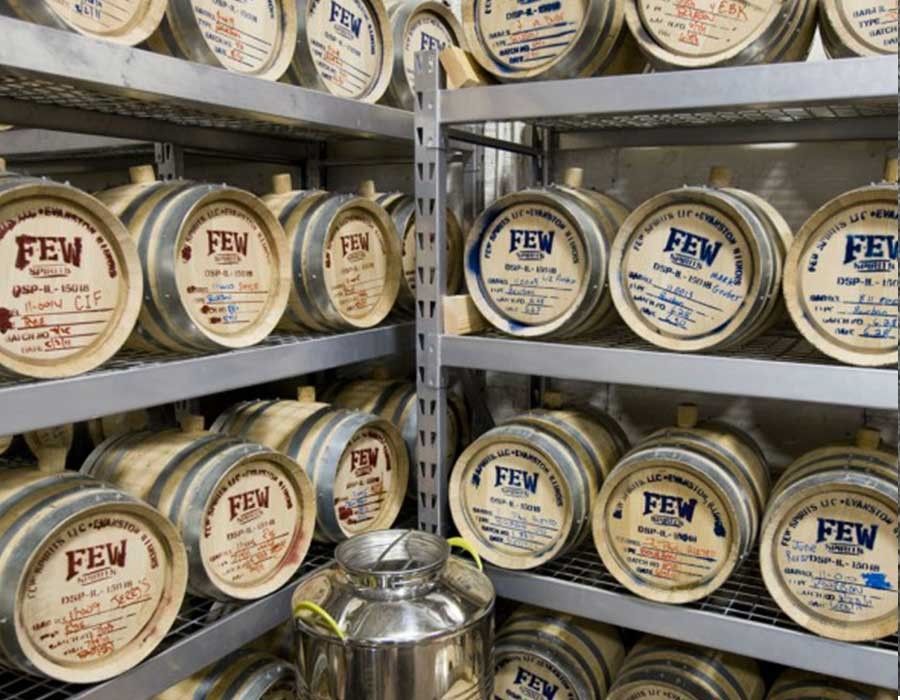 Jede Flasche FEW Spirits Motor Oil Whiskey ist mit einem vom Logo der Band inspirierten Etikett versehen und ist eine Mischung aus drei Whiskeys: FEW Bourbon mit Rumfässern, FEW Bourbon mit Wermutfässern und ein mit Mesquite geräucherter Weizenwhiskey.