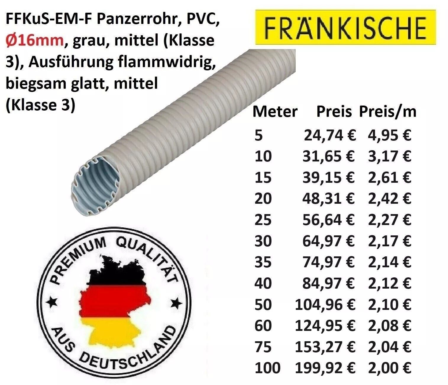 Fränkische FFKuS-EM-F Fränkische Panzerrohr PVC Ø16mm grau mittel (Klasse 3) biegsam, glatt