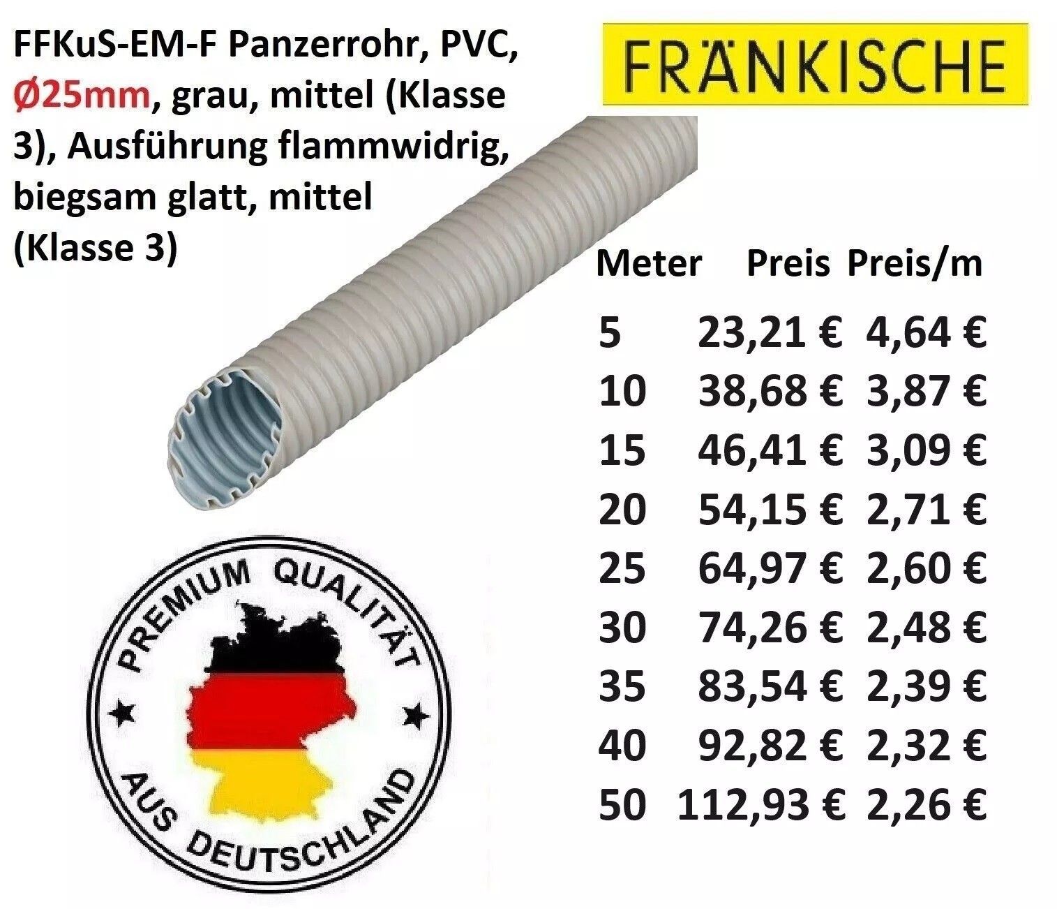Fränkische FFKuS-EM-F Fränkische Panzerrohr PVC Ø25mm grau mittel (Klasse 3) biegsam, glatt