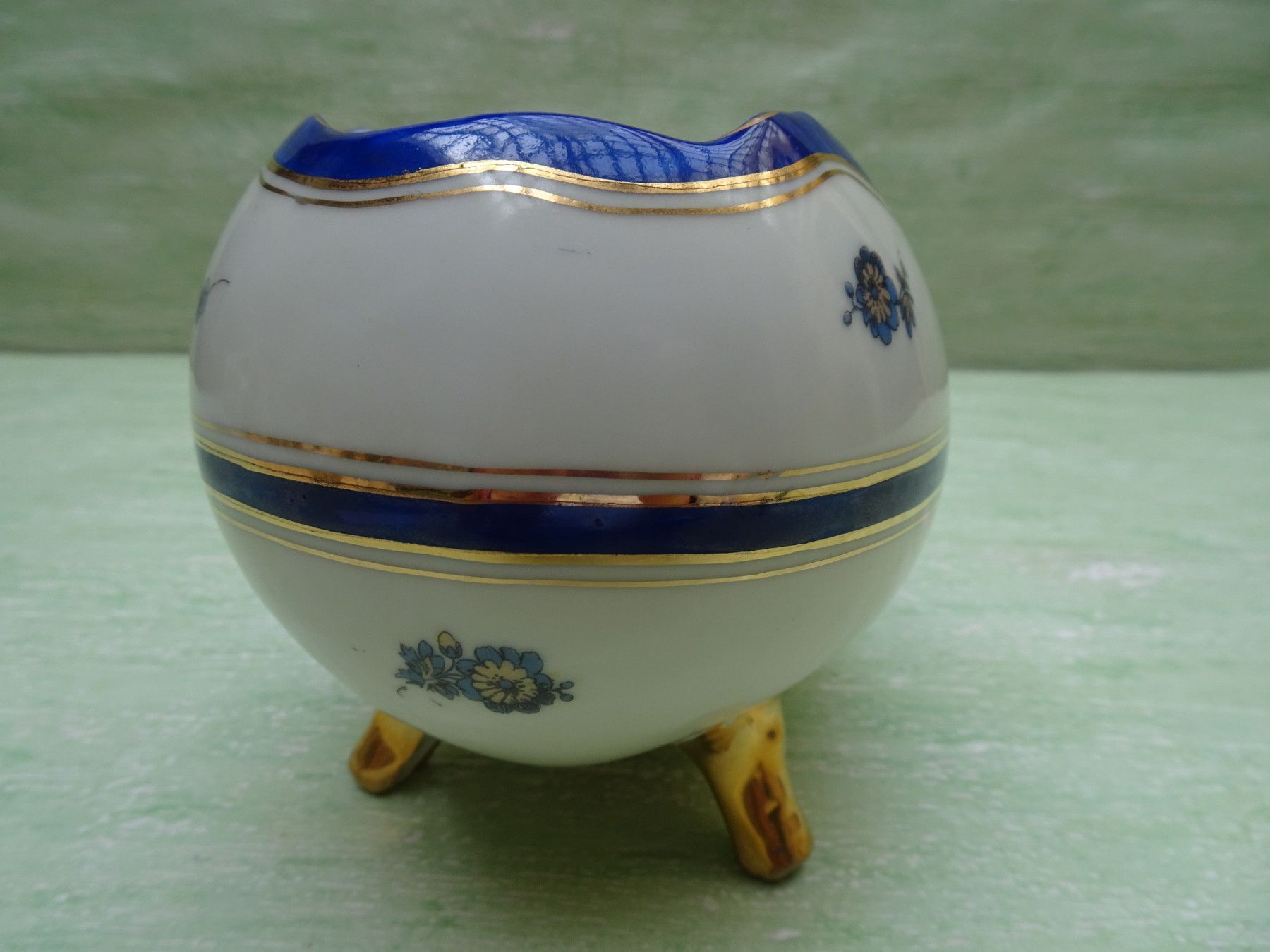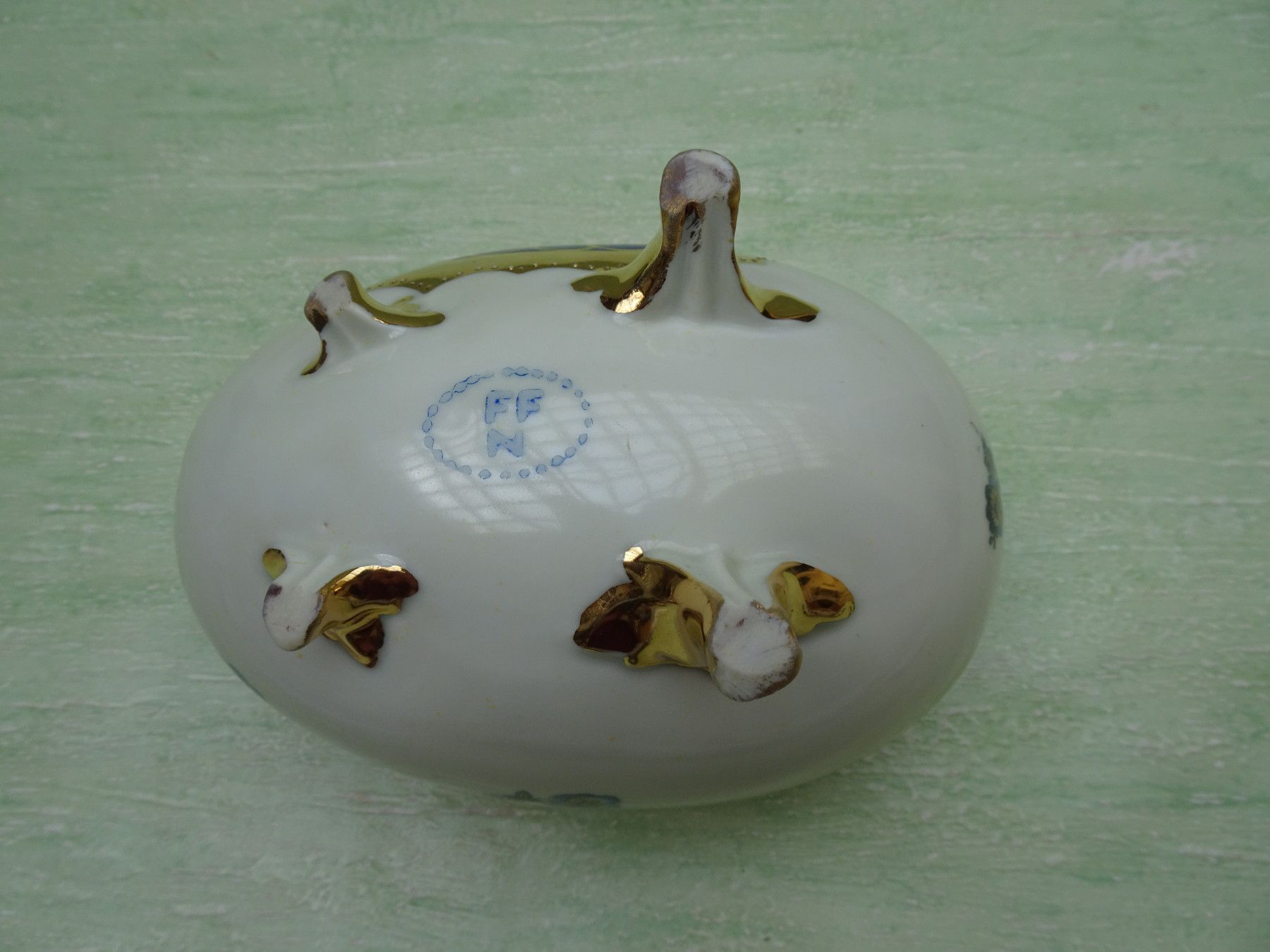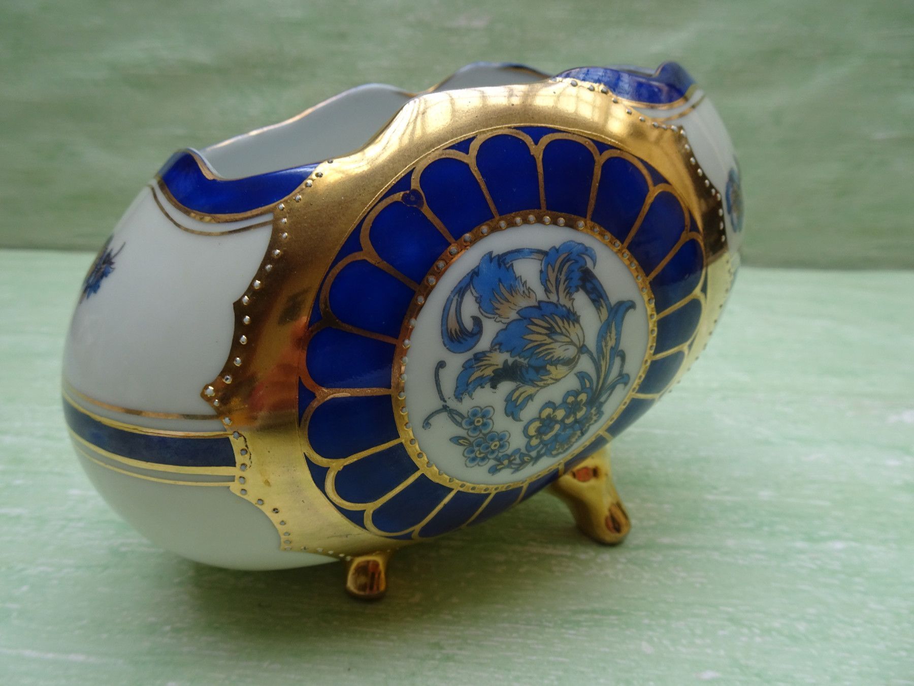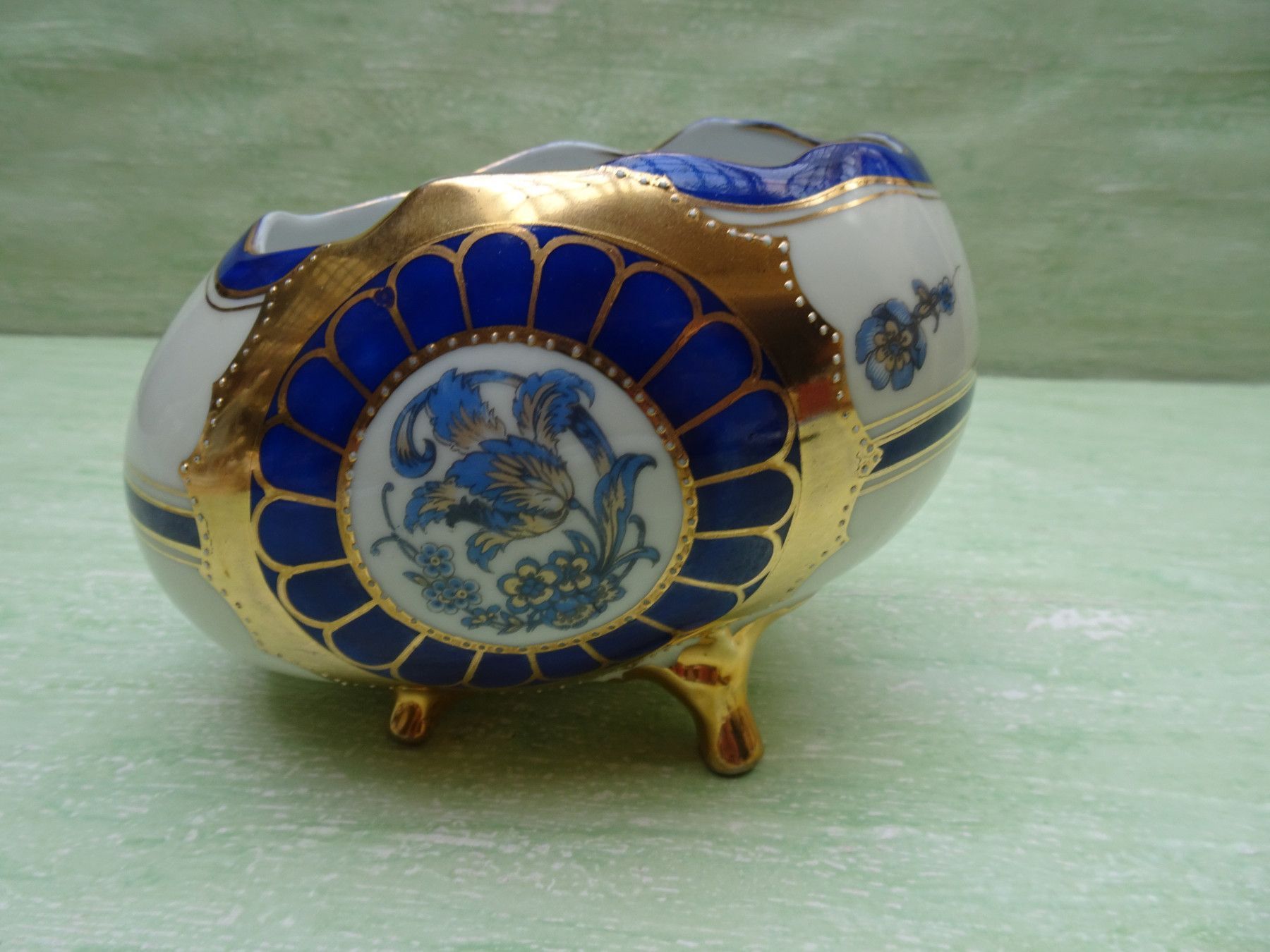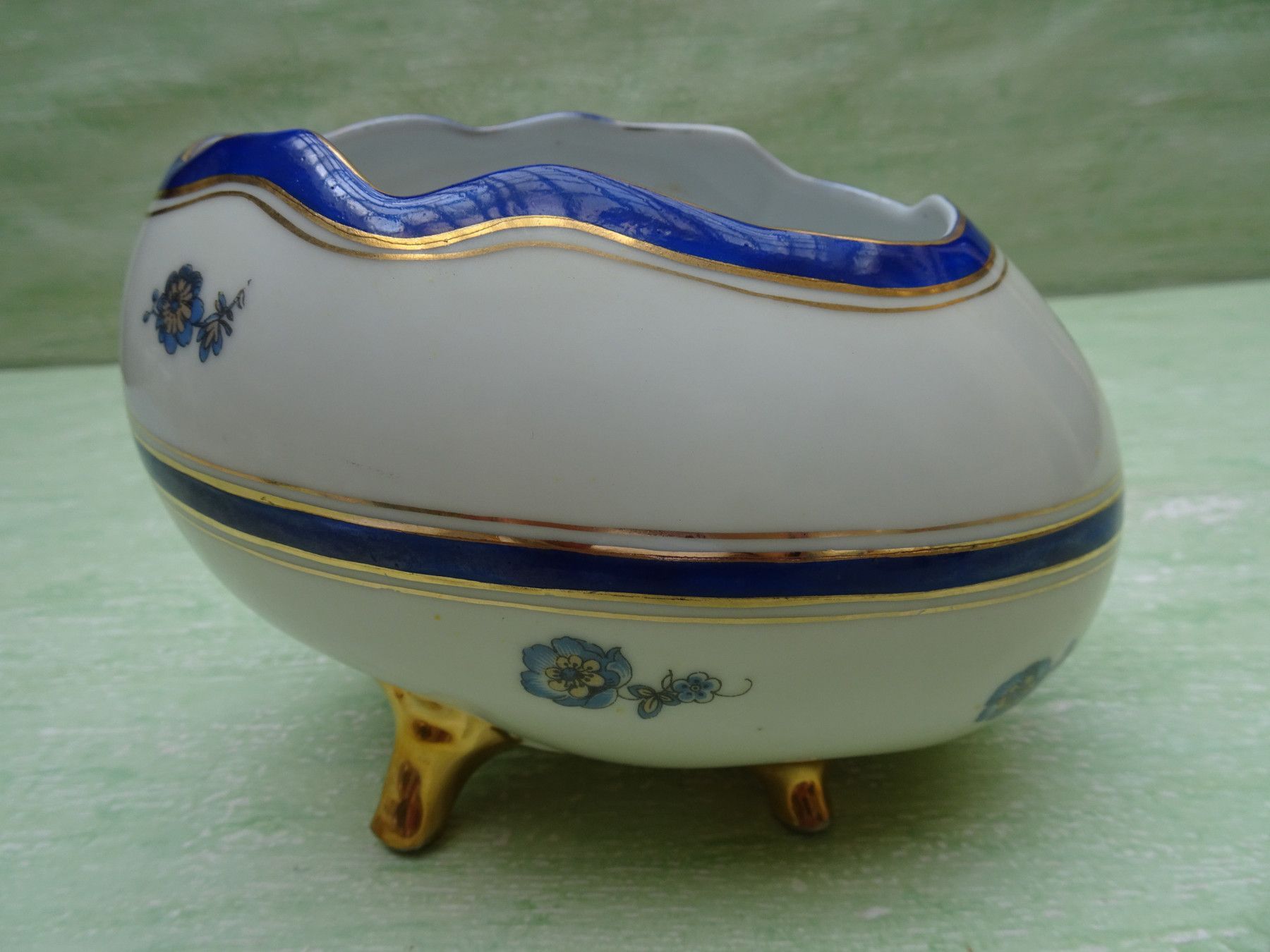FFN Franz Fritz offenes Porzellanei Deckeldose Bonboniere auf Füßchen blaue Blüten