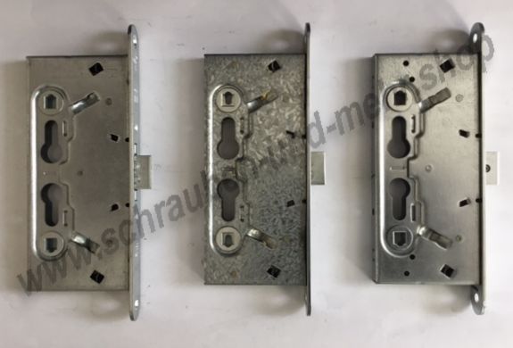 FH Einsteckschloss mit Mittenfallen, Stulp 24 x 235 mm, durchgehende Nuß, 65 mm Dorn, 72 mm Entfernung, 9 mm Vierkant DIN links rechts Nr. 511 durchgehende Nuß Nr. 512 BMH 1758, Panik-Durchgangsfunktion D, geteilte Nuß Nr. 513 BMH 1759, Panik-Wechselfunktion E, durchgehende Nuß Teilweise aus alten L