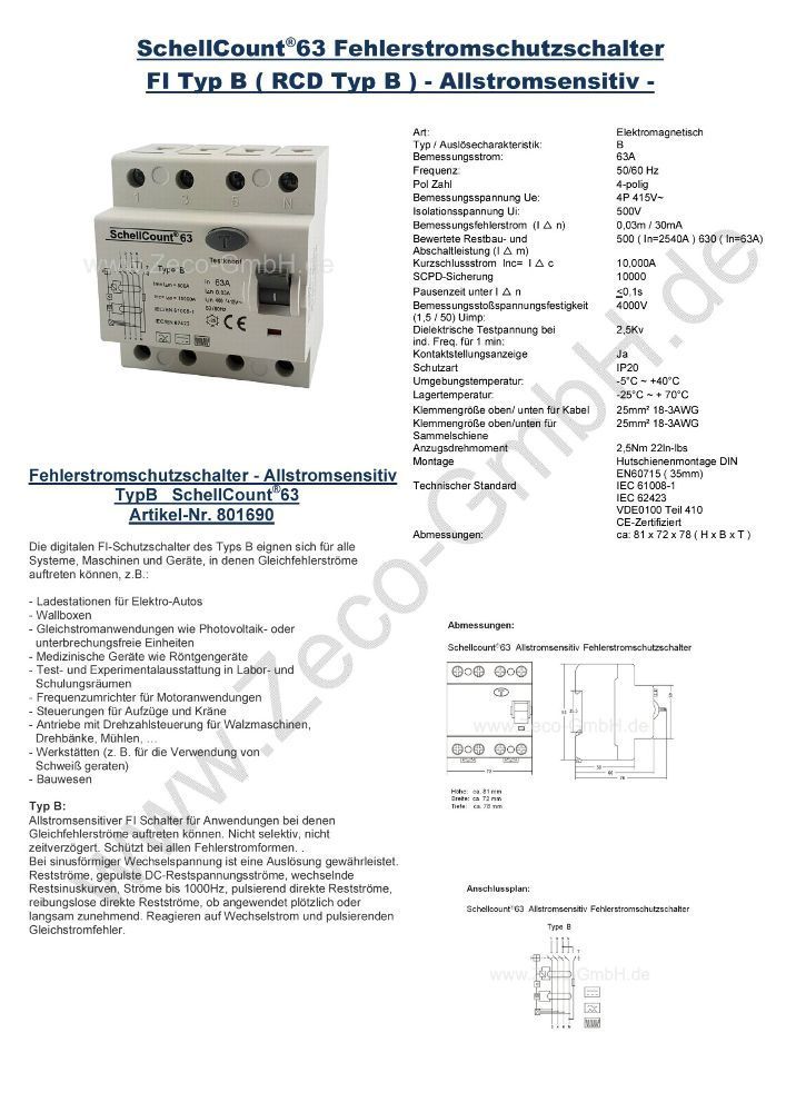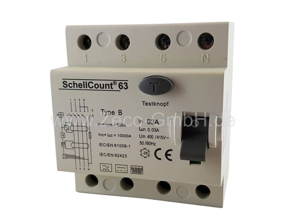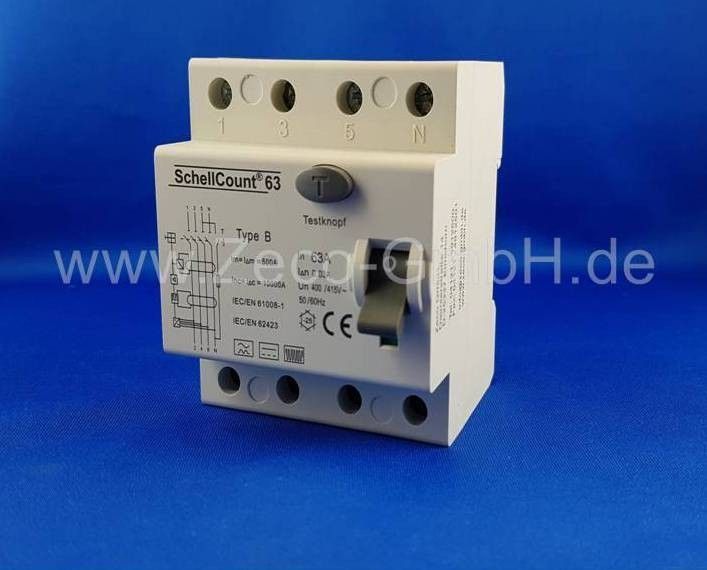 FI / RCD Typ B - Allstromsensitiv - / 63A 4-Polig / 0,03A / 30mA / E-Mobility