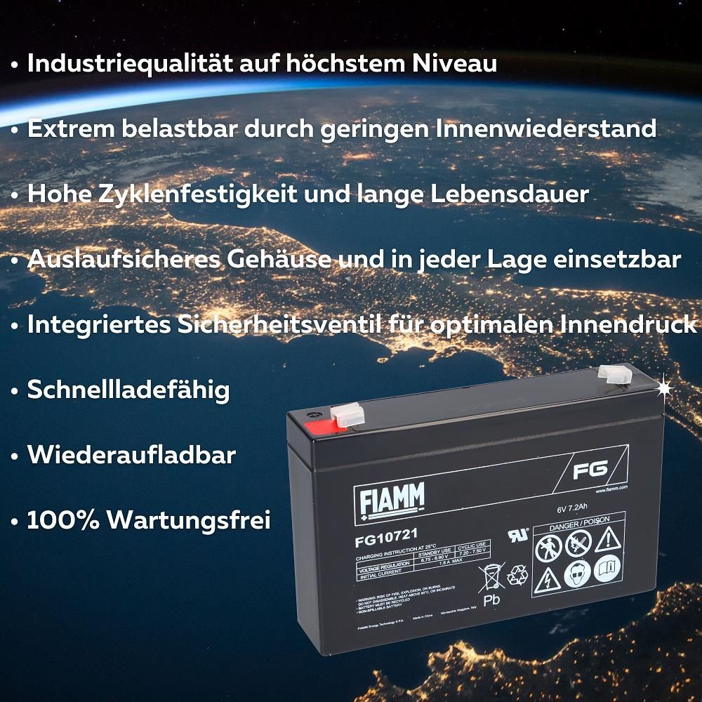 Fiamm Blei-Akku FG10721 Pb 6V / 7,2Ah Faston 4,8