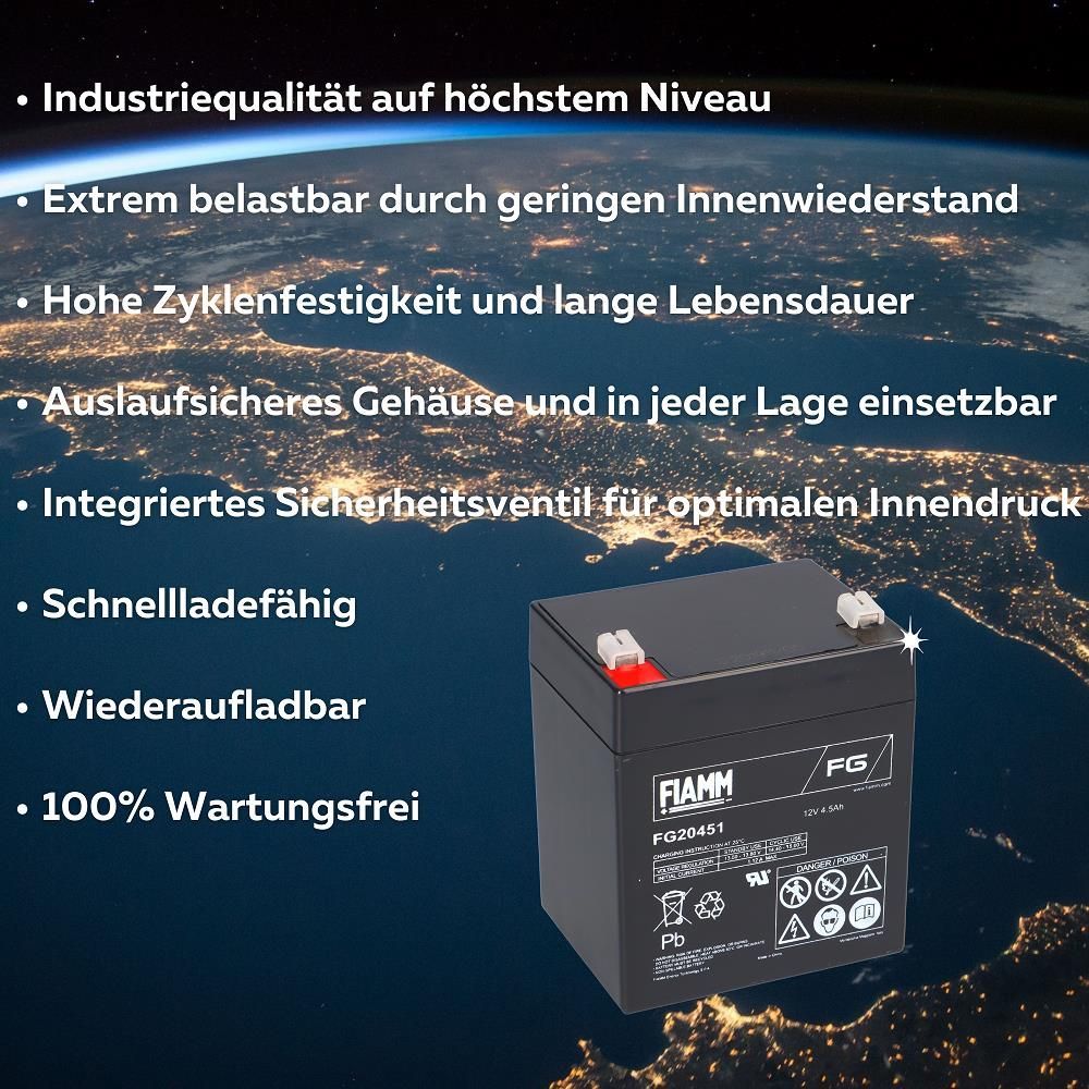 Fiamm Blei-Akku FG20451 Pb 12V / 4,5Ah Faston 4,8