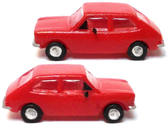 Die Bezahlung ist nur mit PayPal oder Barzahlung bei Abholung möglich, keine Banküberweisung !!! MundoCamion Maßstab 1:160 neuwertiges Modell : Fiat 127 '71, Kleinwagen, rot Einsetzbar auf der Modellbahn ab Epoche IV Das Modell wurde aus einem Kleinserien- 3D-Druck- Bausatz fertig gebaut, mit Airbru