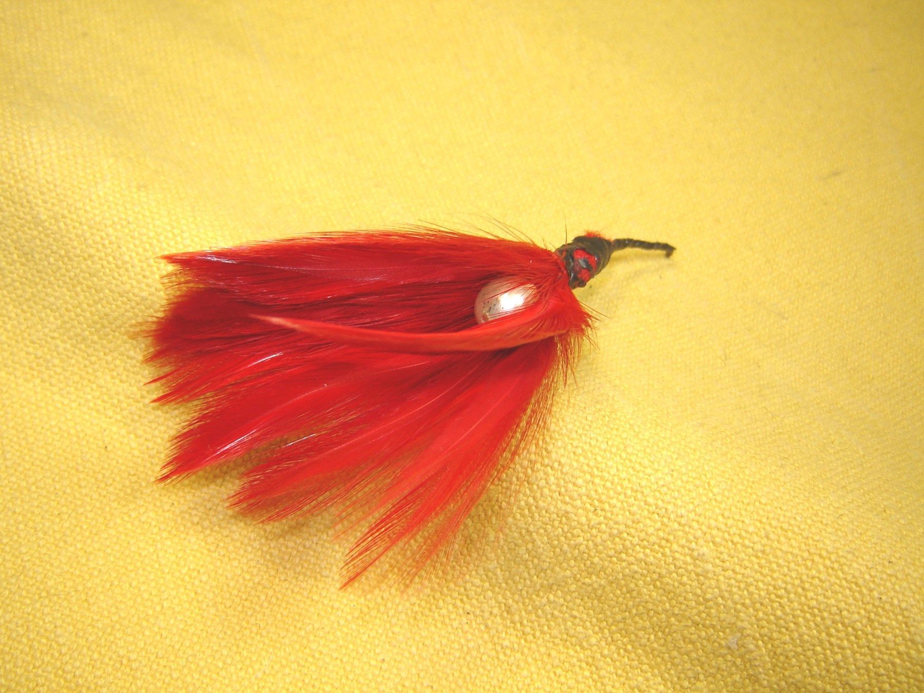 fiedrige Feder für Damenhut Pillbox Hutfeder rot mit Perle ca 7cm F04-9
