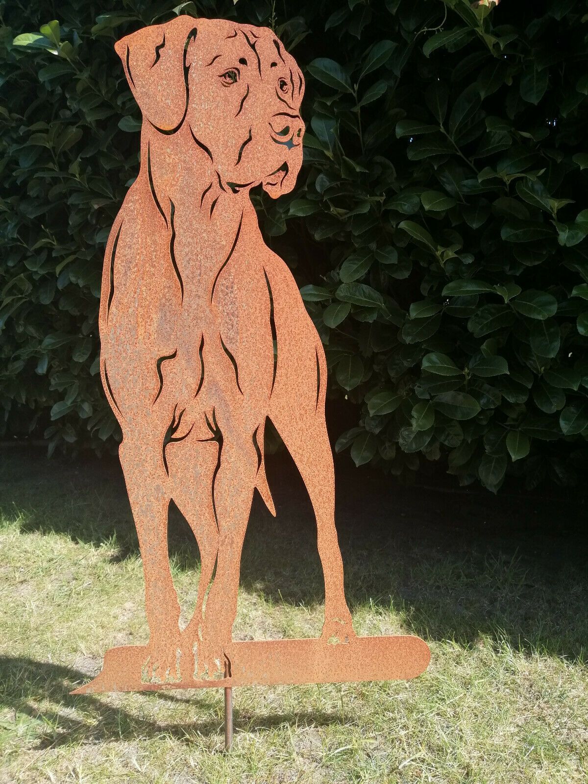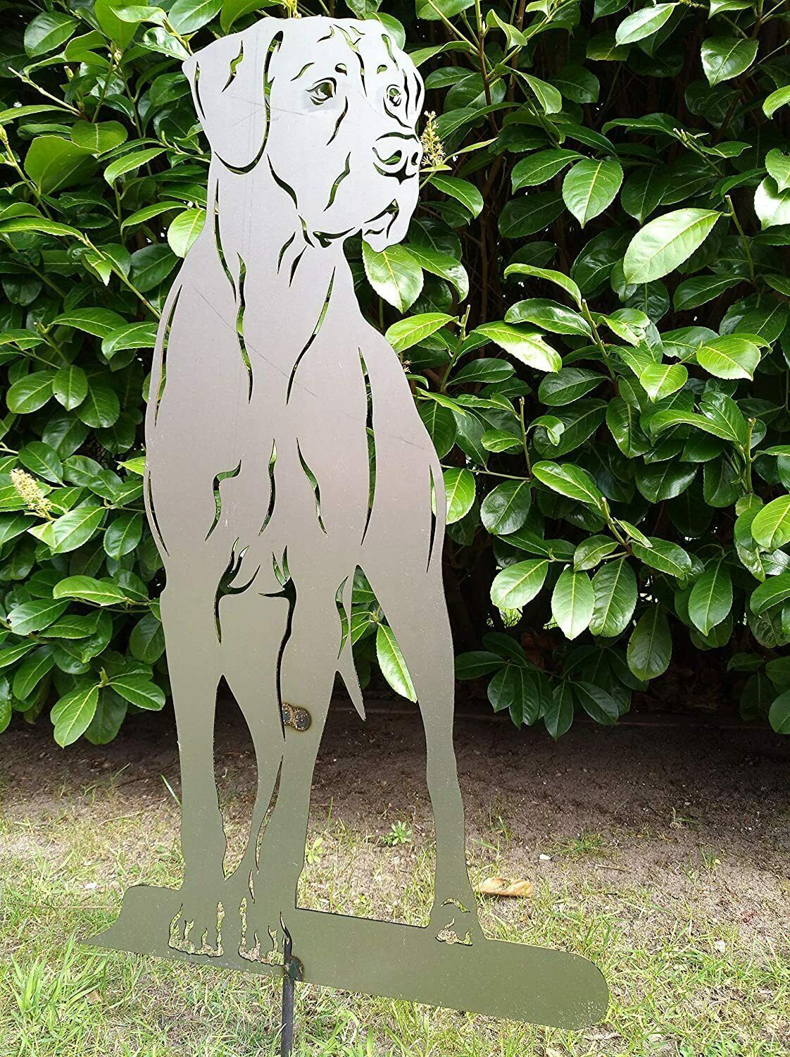 Figur Deutsche Dogge Höhe 80 cm blank Gartenfigur Hundefigur Hund mit Stecker