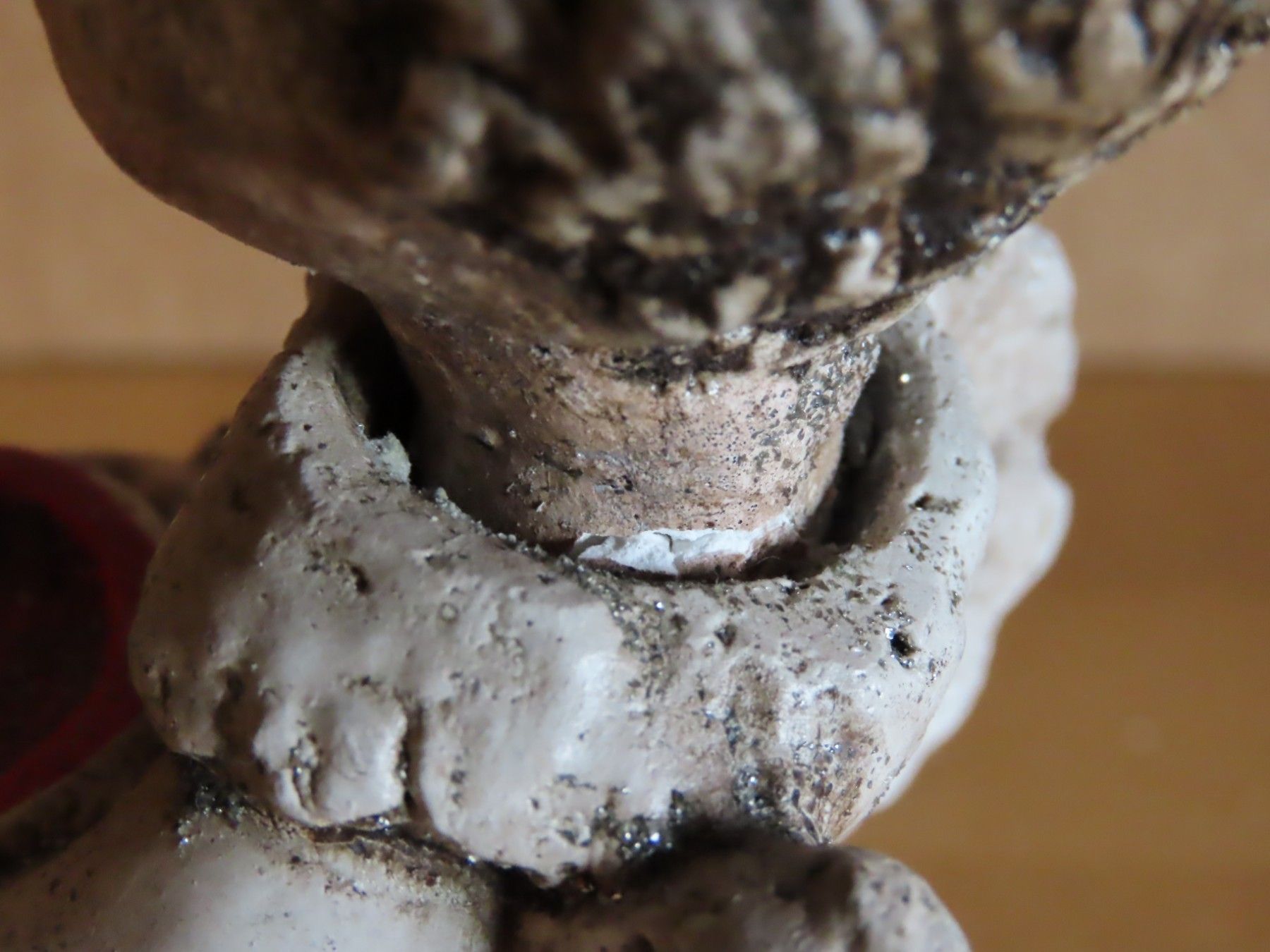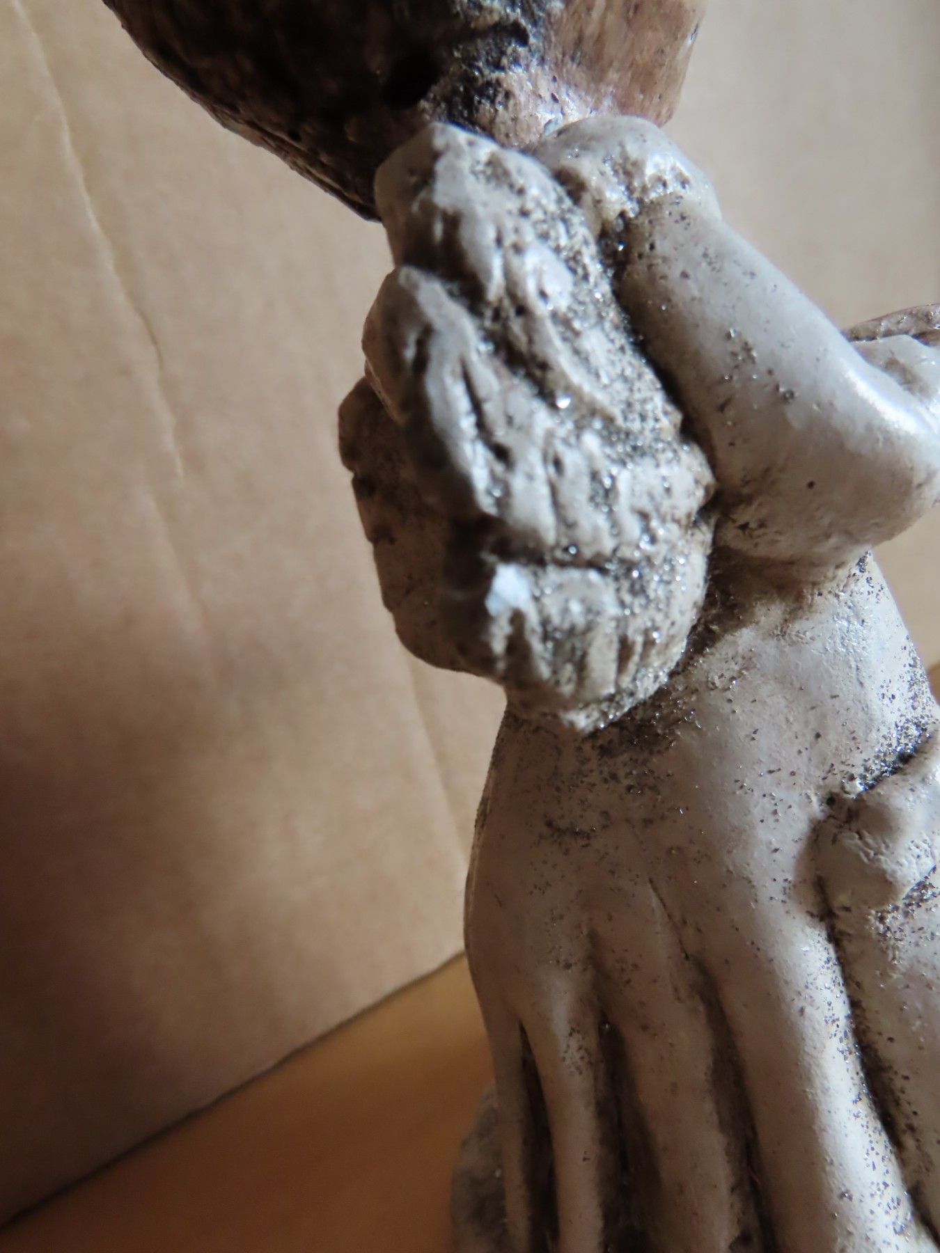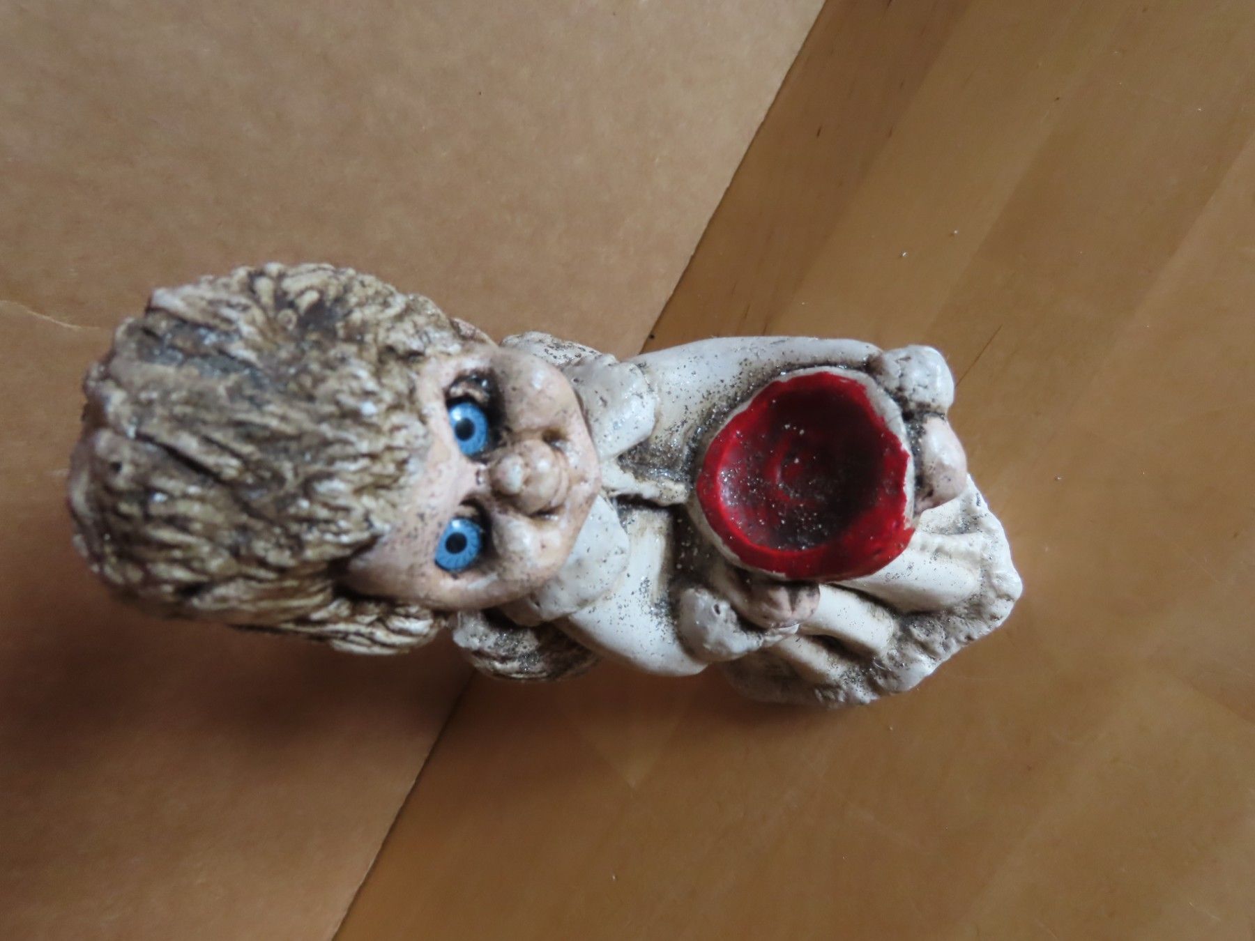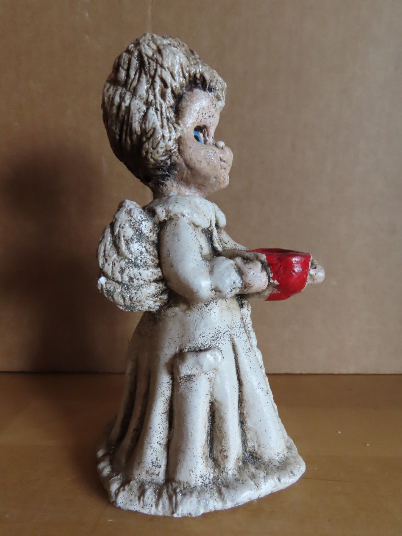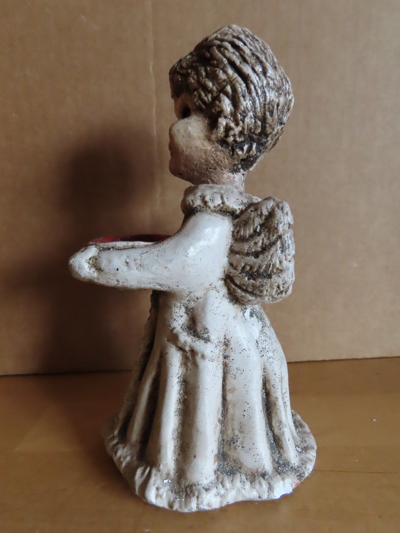Maße: ca. 8 cm breit x ca. 16 cm hoch x ca. 8,5 cm tief--immer die breiteste Stelle gemessen Material: Ton ist leicht verschmutzt und hat einem Flügel eine Absplitterung, der Kopf wackelt etwas hat auch am Hals eine Bruchstelle habe es versucht auf den Bildern mit abzubilden Könnte Handarbeit sein... Mehr