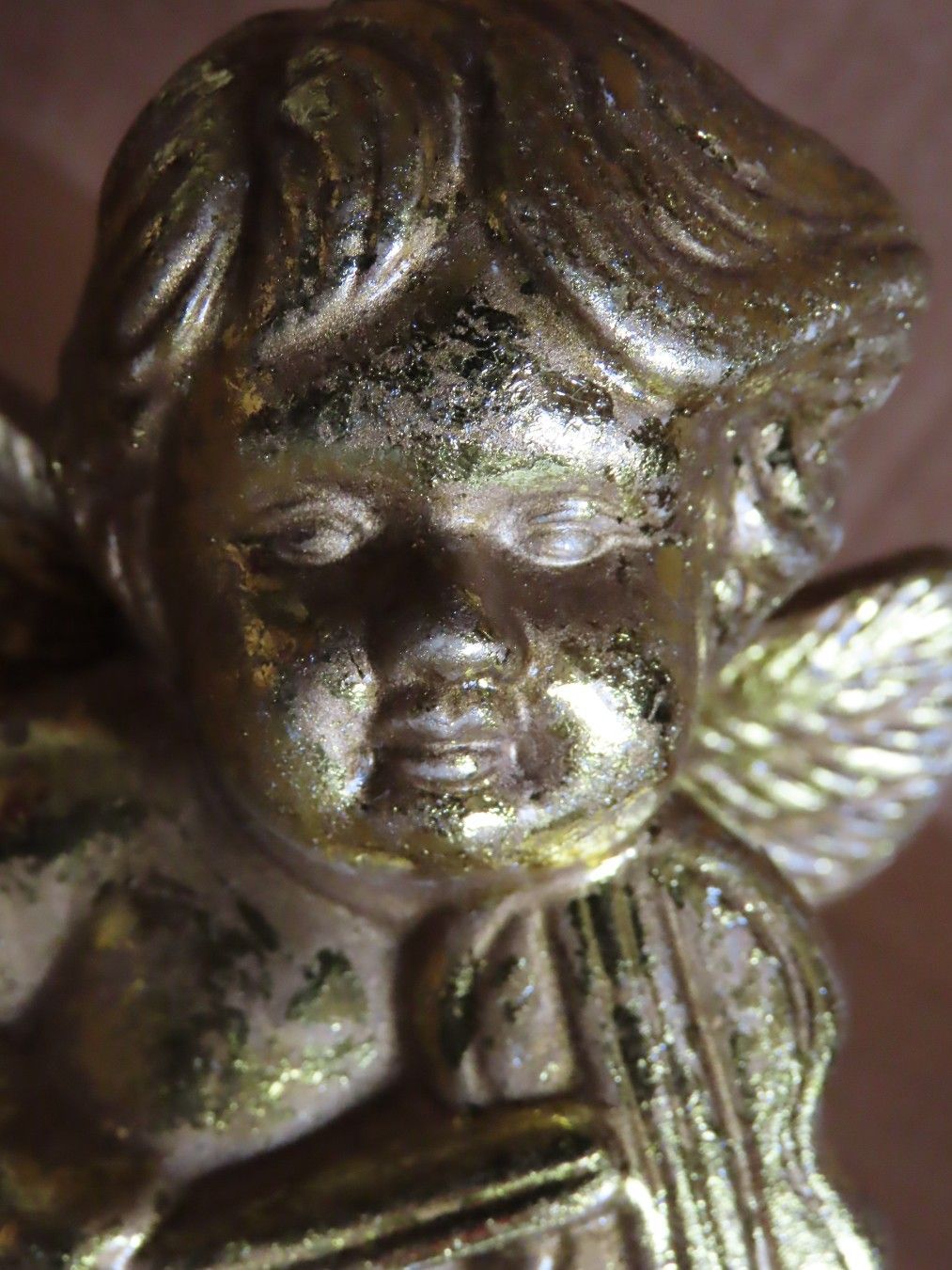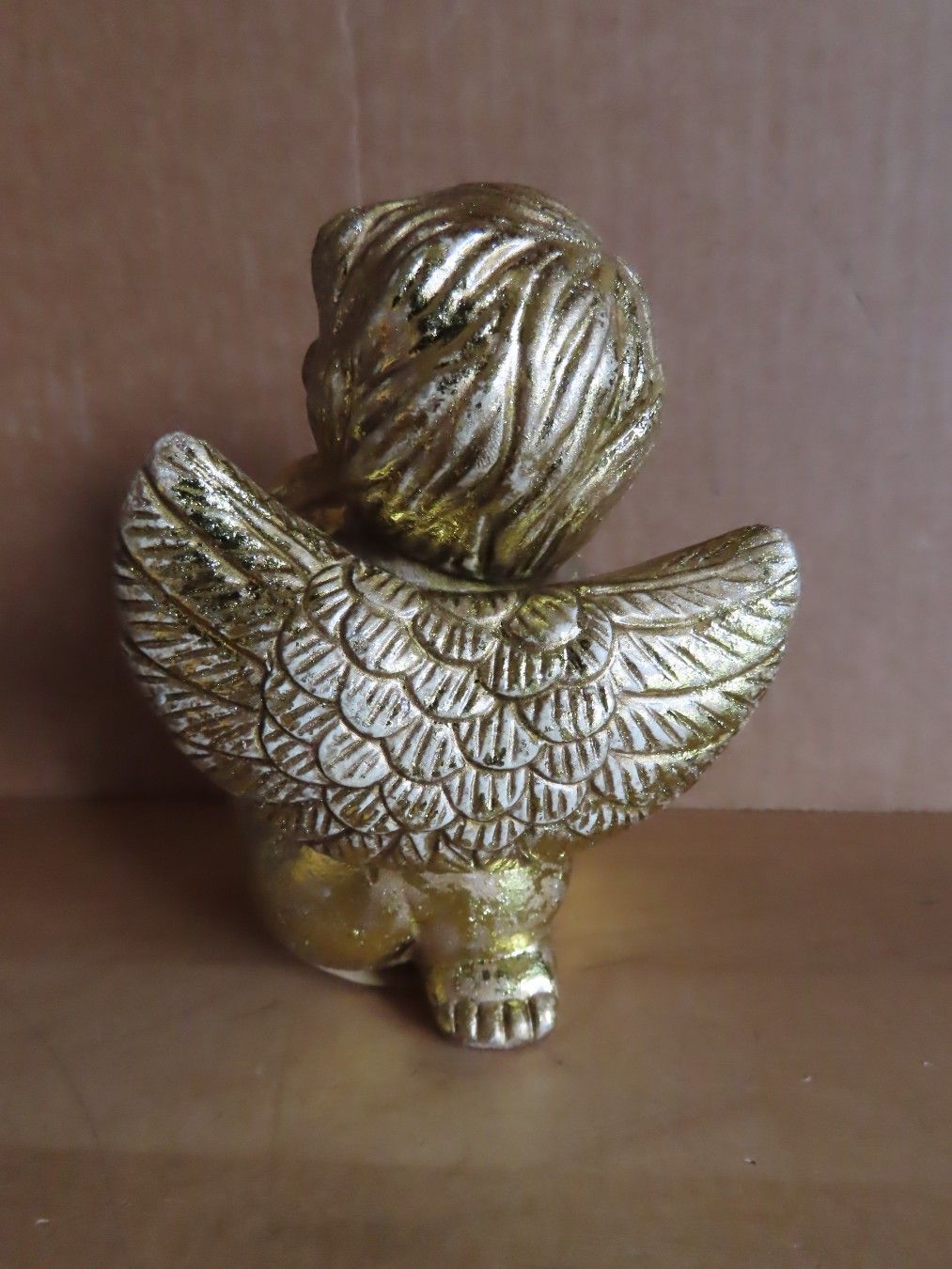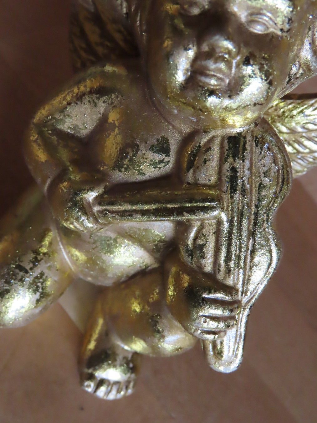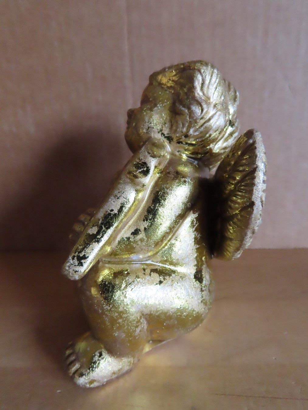 Figur Engel kniet spielt Geige goldfarben Keramik ca. 11,9cm H