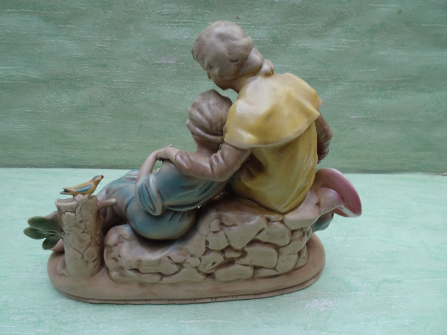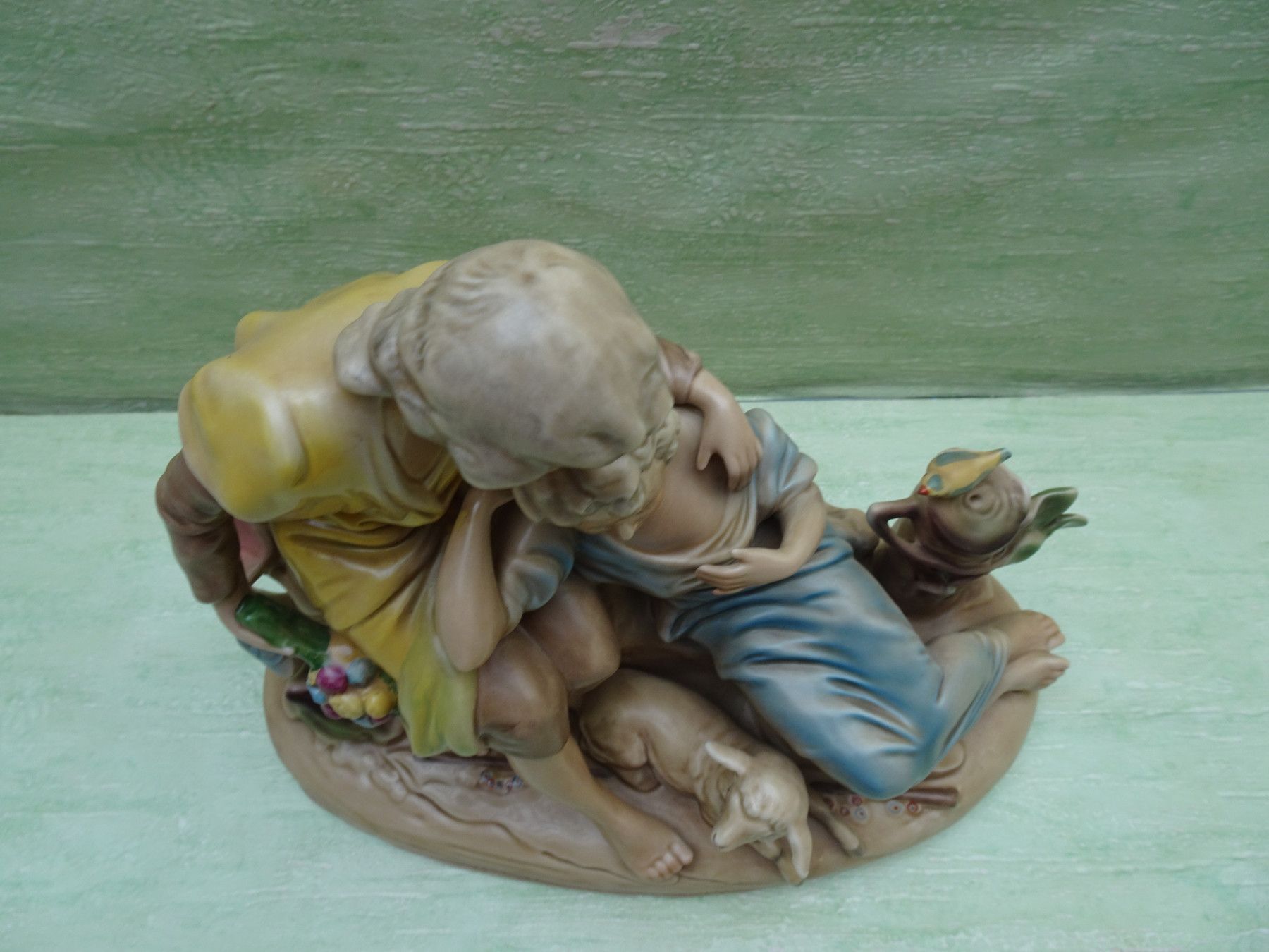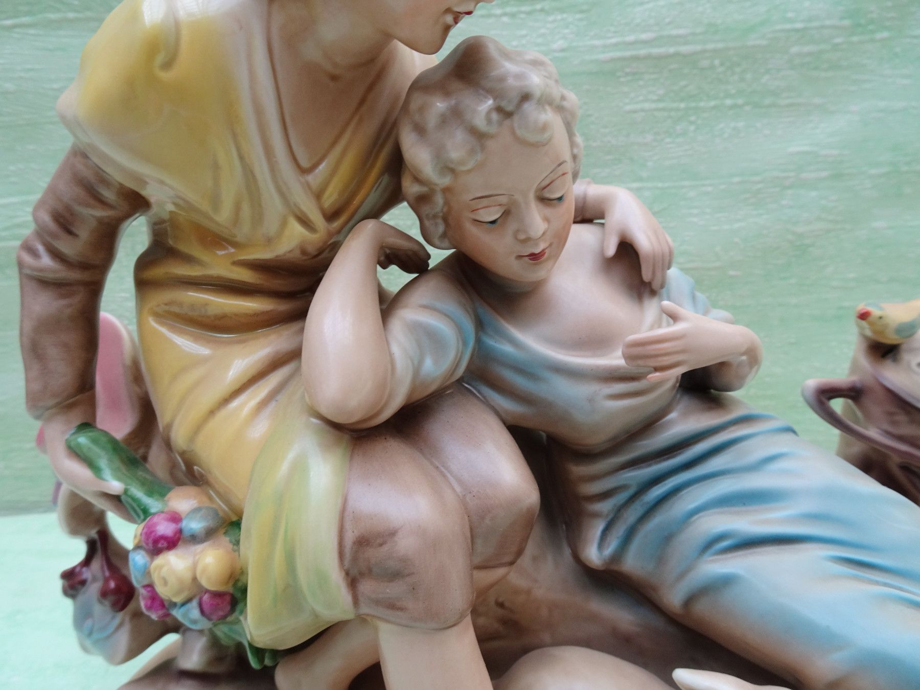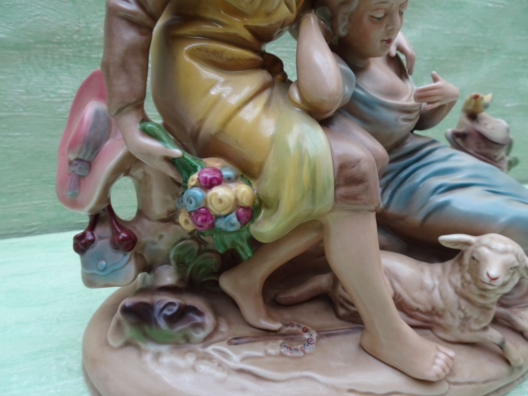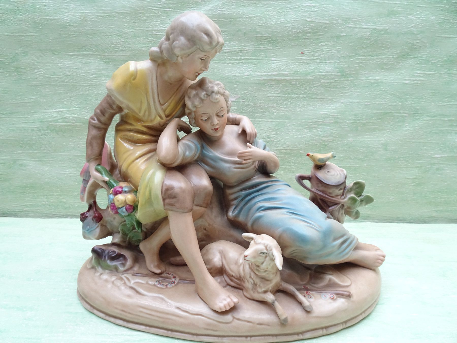 Figur Gräfenthal handgemalt nr 11796 Liebespaar Frauen mit Schaf Vogel ca 34 x 29 cm