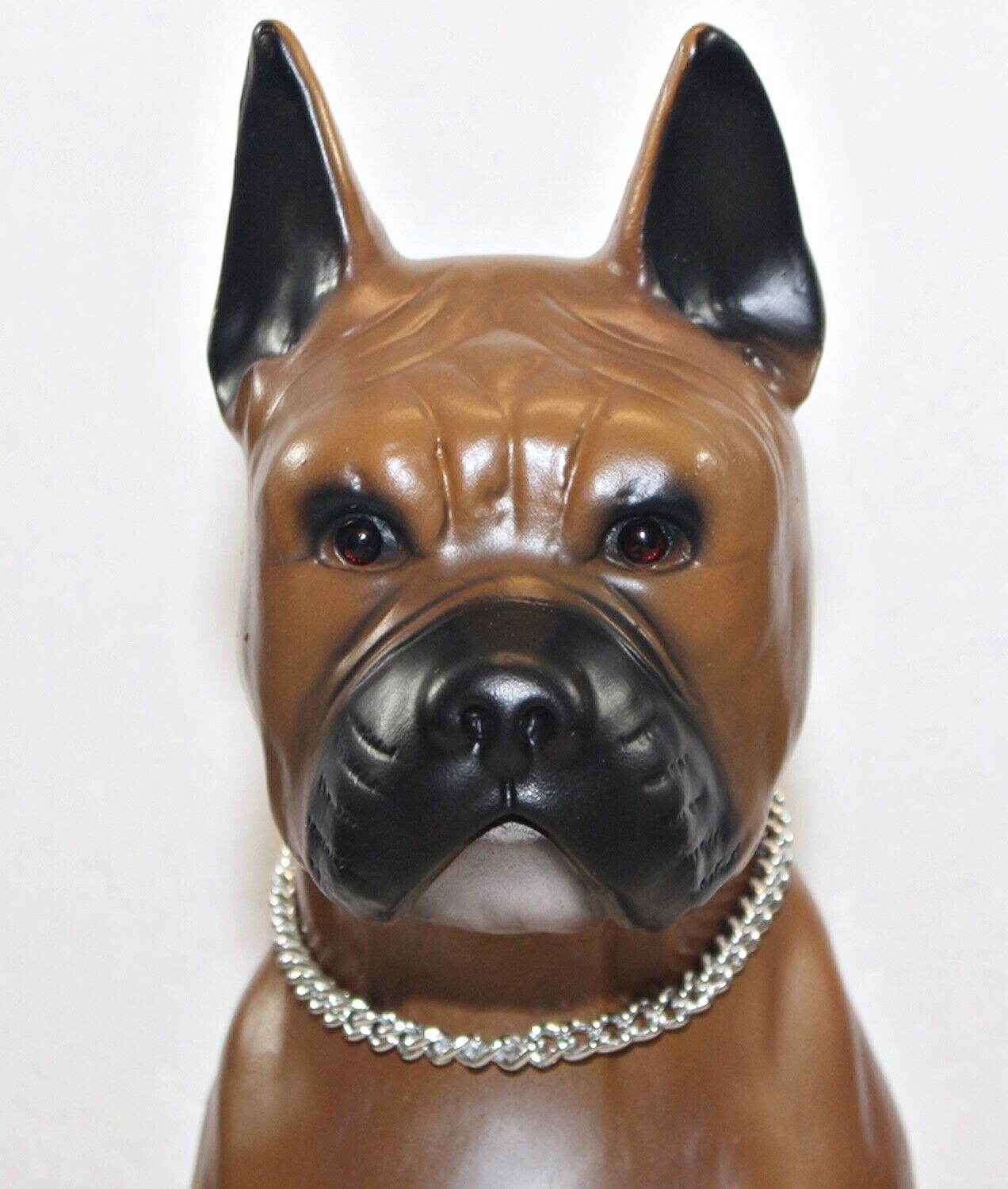 Deko Figur Tierfigur Hund Boxer mit Kette sitzend aus Kunststoff H 40 cm (Gr. Klein)