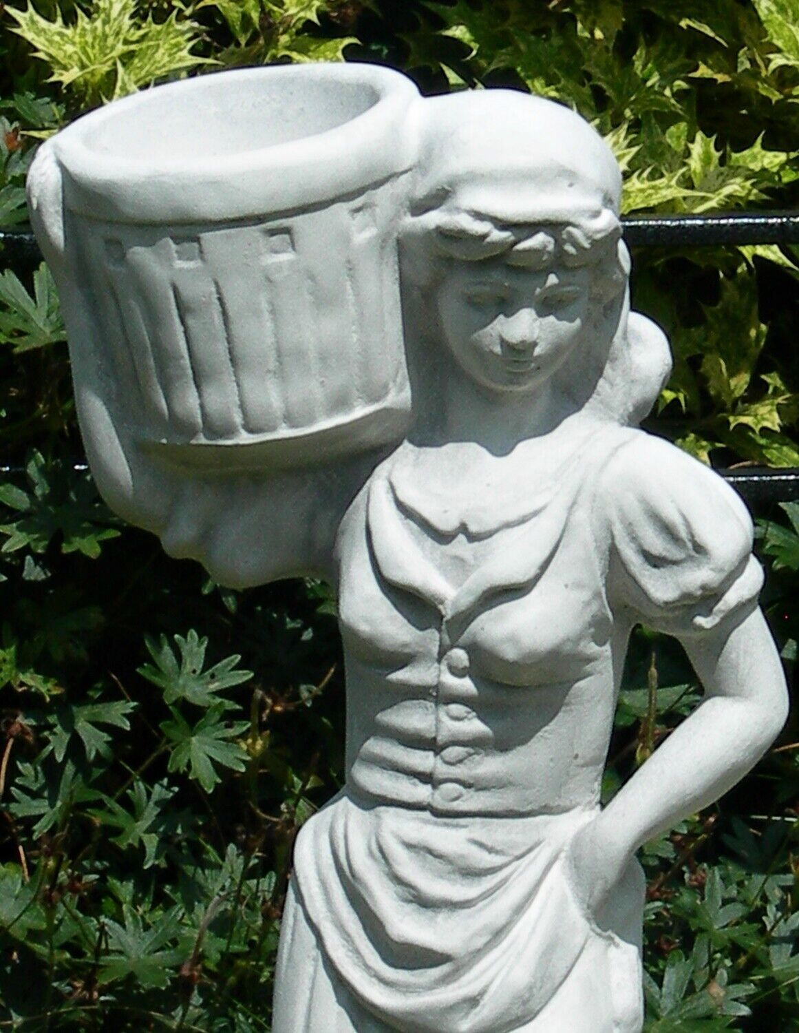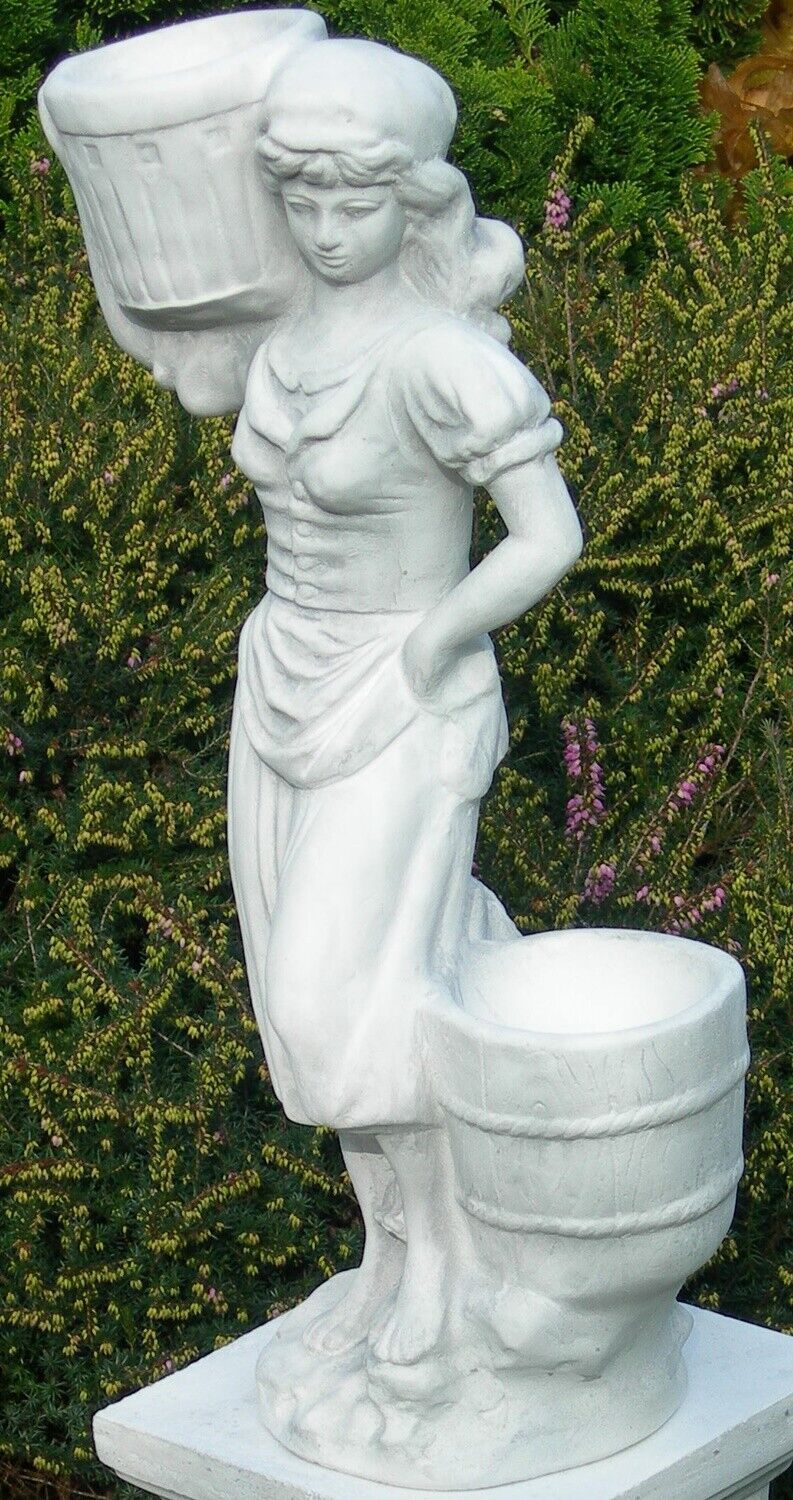 Figur junge Frau mit zwei Töpfen zum Bepflanzen H 50 cm Skulptur Statue Beton