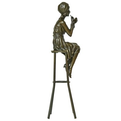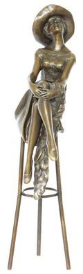 • Bronzeskulptur Frau auf Barhocker Bar Bronze Figur Skulptur sculpture woman