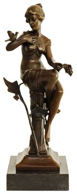 • Bronzeskulptur Frau Vogel im Antik-Stil Bronze Figur Statue 23cm