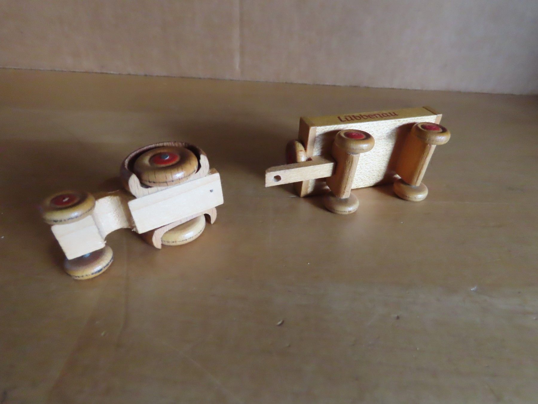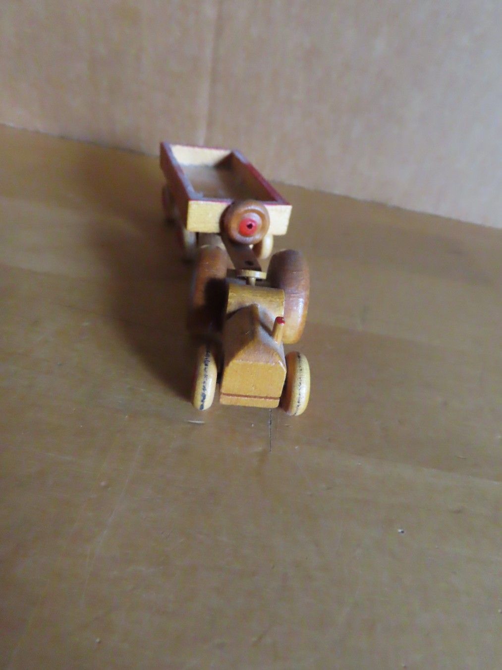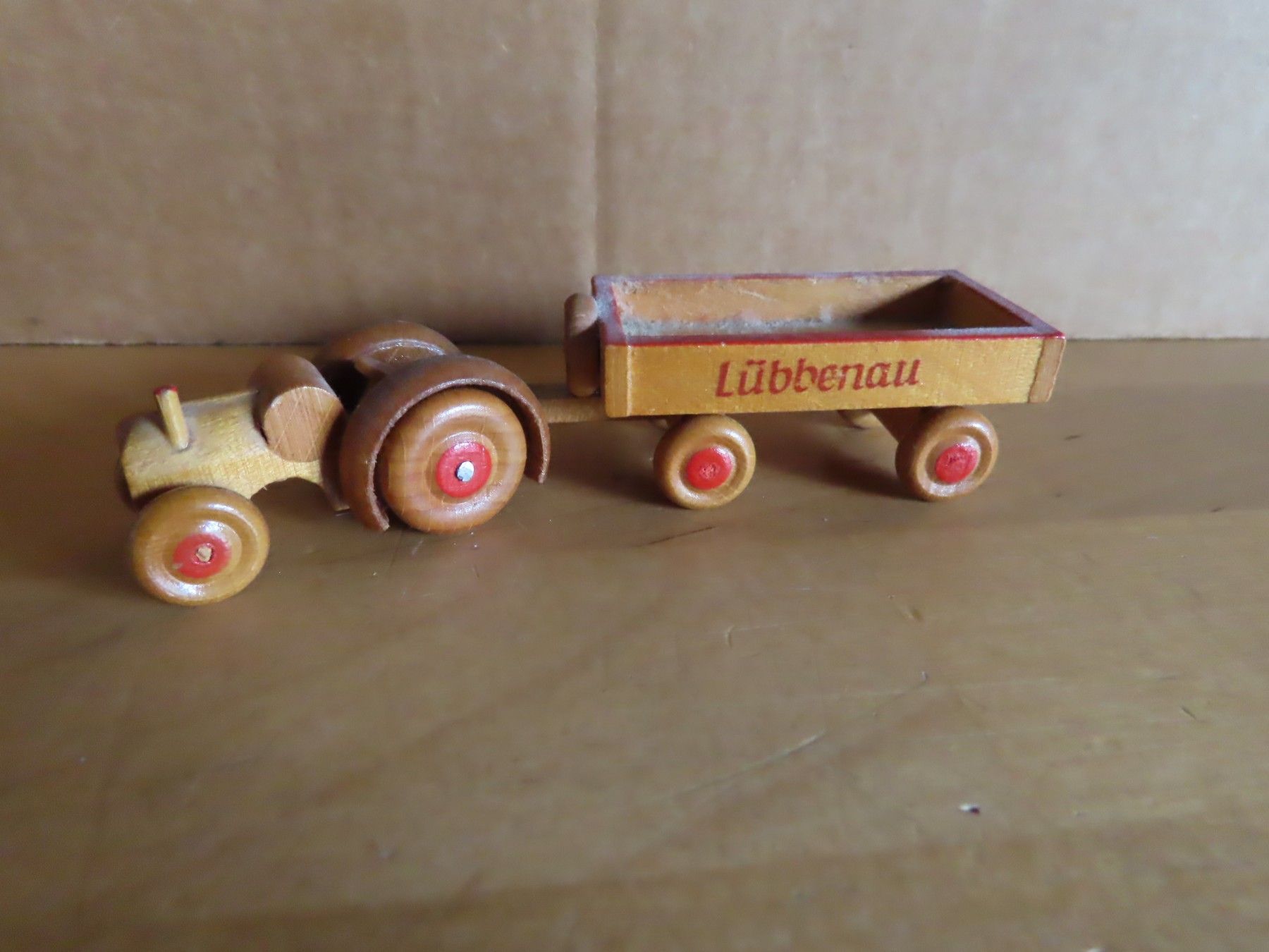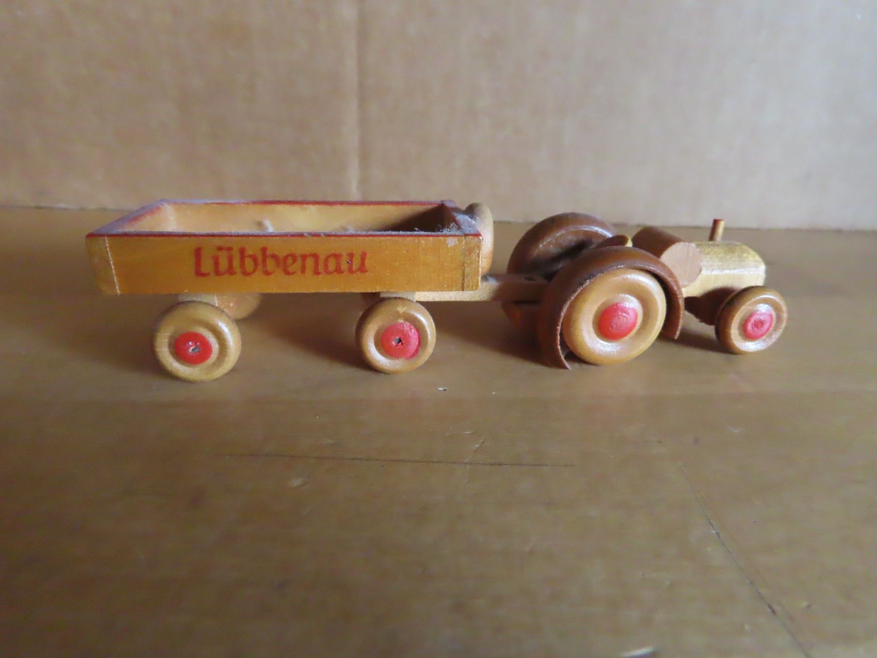 Figur kleiner Holztrecker mit Anhänger Lübbenau (reparaturbedürftig)