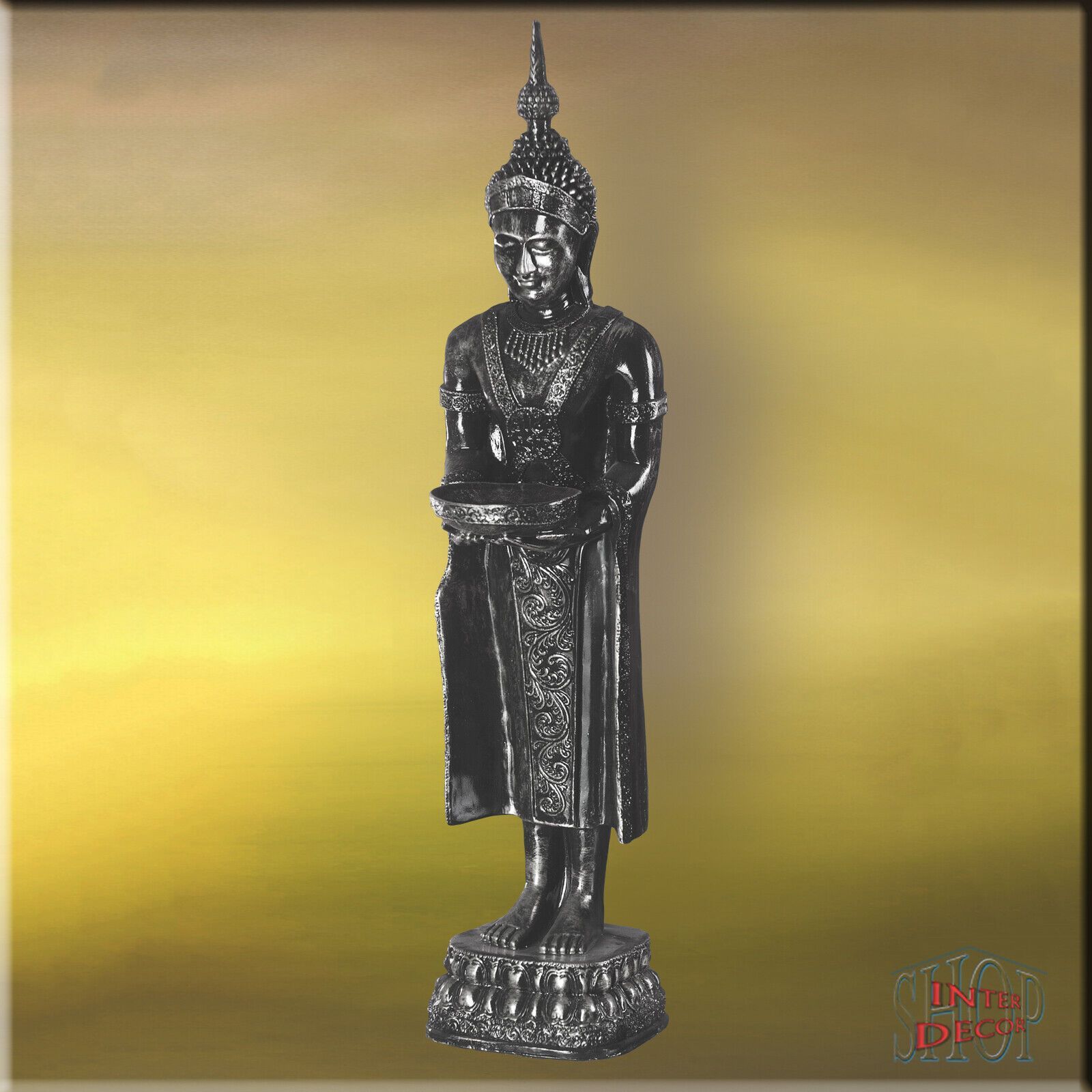 Thailändische Figur Buddha POS 62 P HANDARBEIT Material : Kunstharz Farbe : Die verfügbare Farben Muster sind unten aufgeführt. Höhe ca : 73,5 cm Breite ca : 25 cm Tiefe ca : 16 cm Gewicht ca : 3 kg Lieferzeit : 2 bis 5 Wochen Für Innen und Außenbereich !!! Der Buddha ist in Handarbeit Verfahren aus
