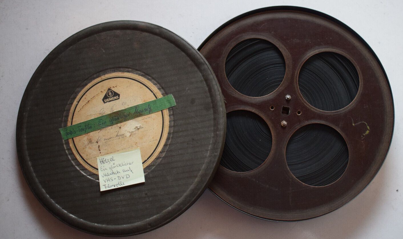 Filmsdose aus Metall grau mit Film beschriftet Siemens Tobis Fim: Ein glücklicher Mensch Ewald Balser Siemens Filmdose aus Metall Durchmesser : d: ca. 25 cm Zustand: gebraucht mit Gebrauchsspuren und gutem Zustand. - alters- und lagerungsbedingte Gebrauchsspuren Bitte beachten Sie zusätzlich immer d