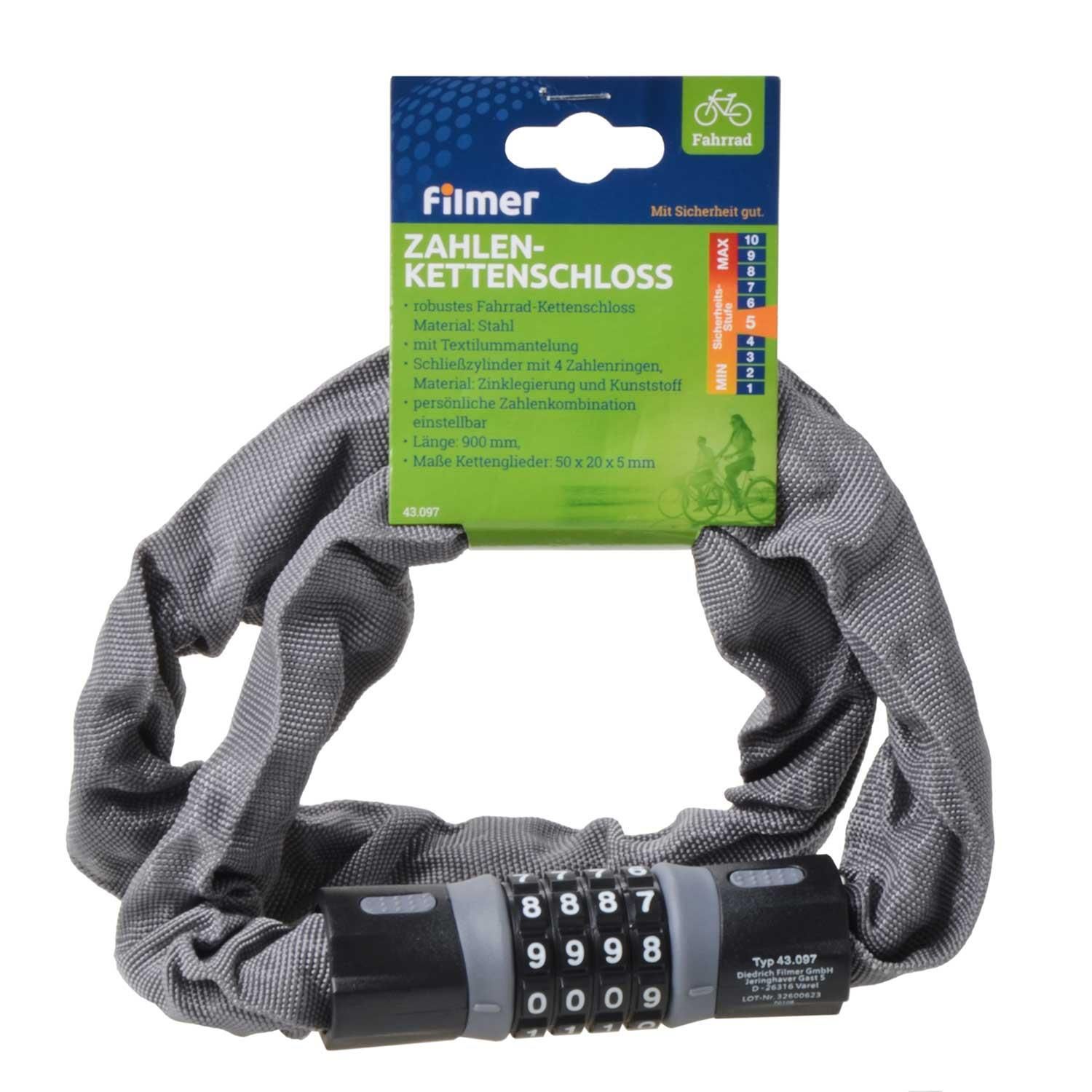 Filmer Filmer 43.097 4-Zahlen Fahrrad Kettenschloss 5mm - 90cm - Level 5