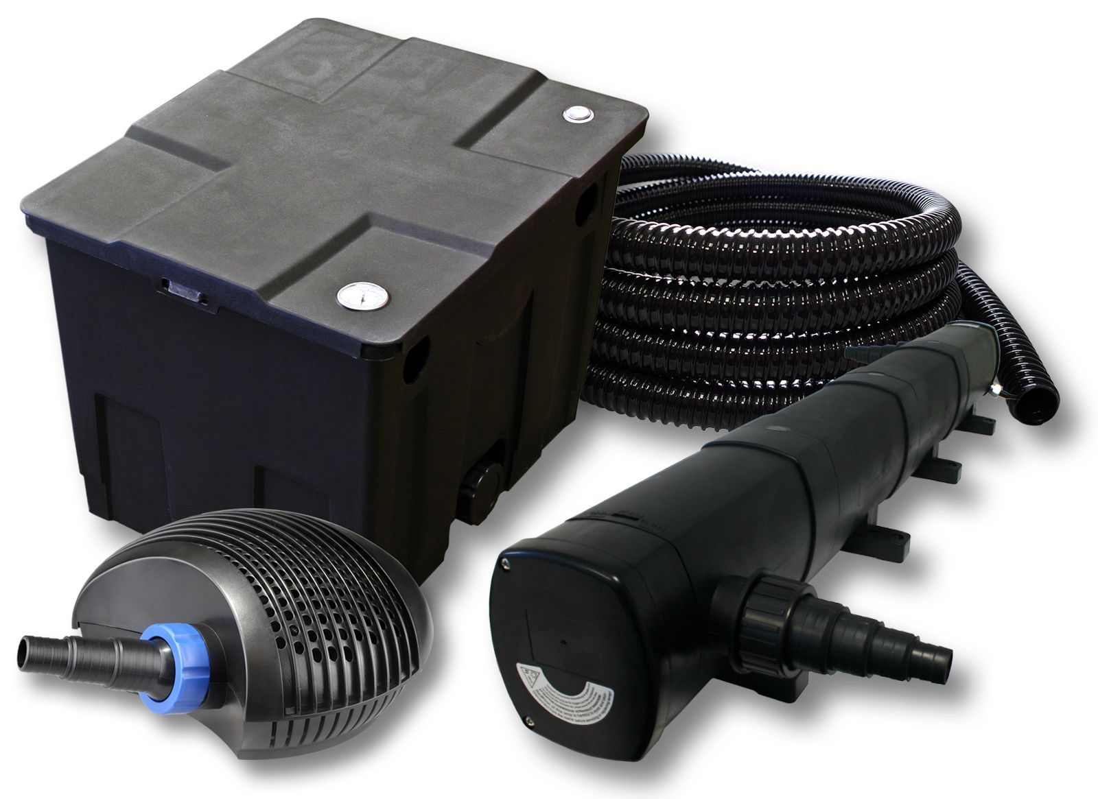 Filter Set 12000l Teich mit 72W Teichklärer CTF ECO Pumpe mit 20W 25m Schlauch