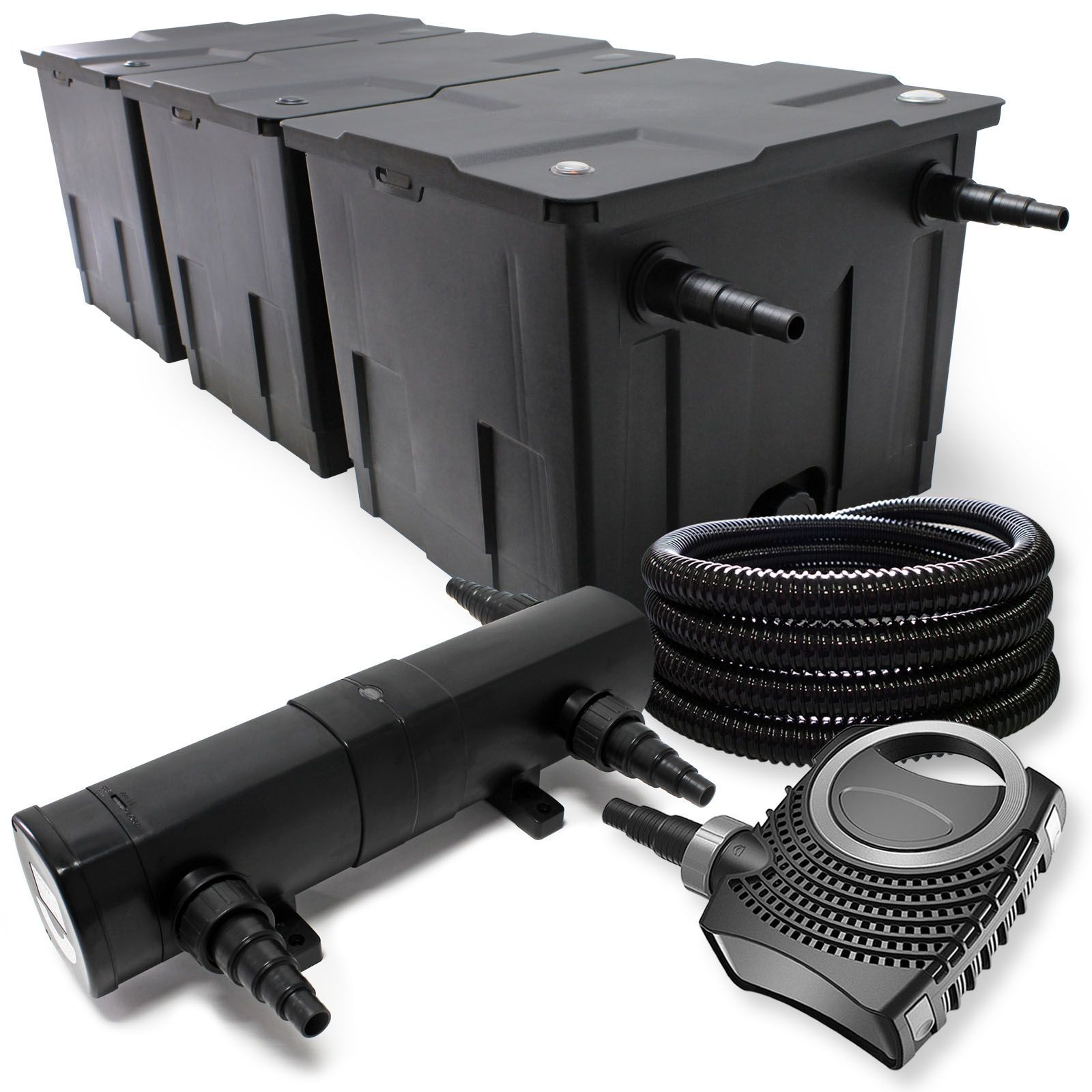 Filter Set Bio Teichfilter 90000l 24W UVC Klärer SuperEco Pumpe 25m Schlauch 117