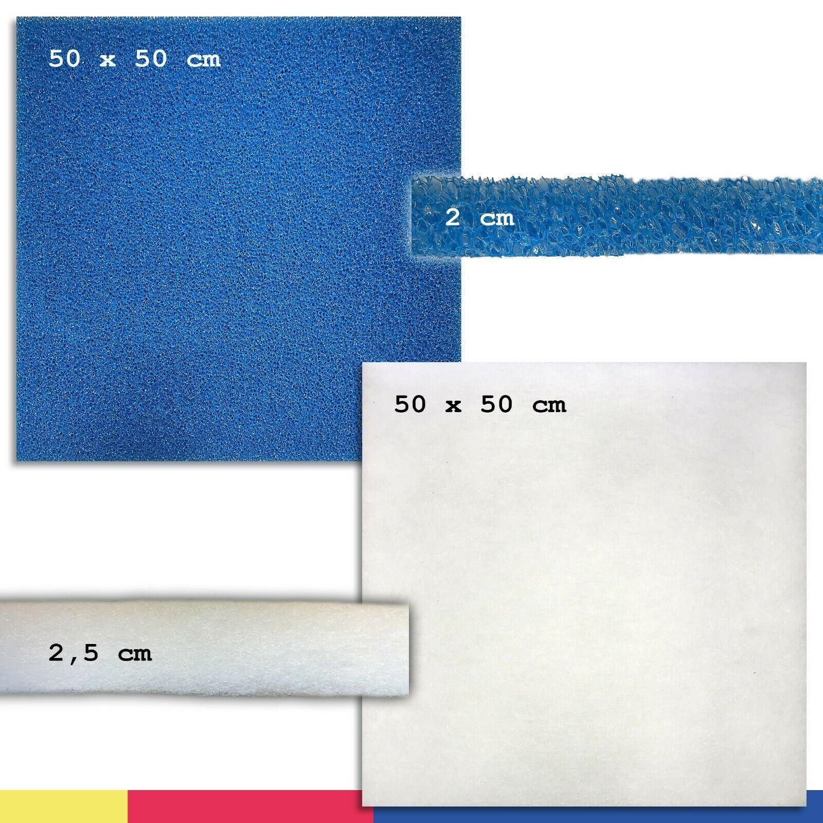 FilterMaster 50x50x2,5cm Feinfiltervlies + 50x50x2cm 10 PPI Filtermatte grob