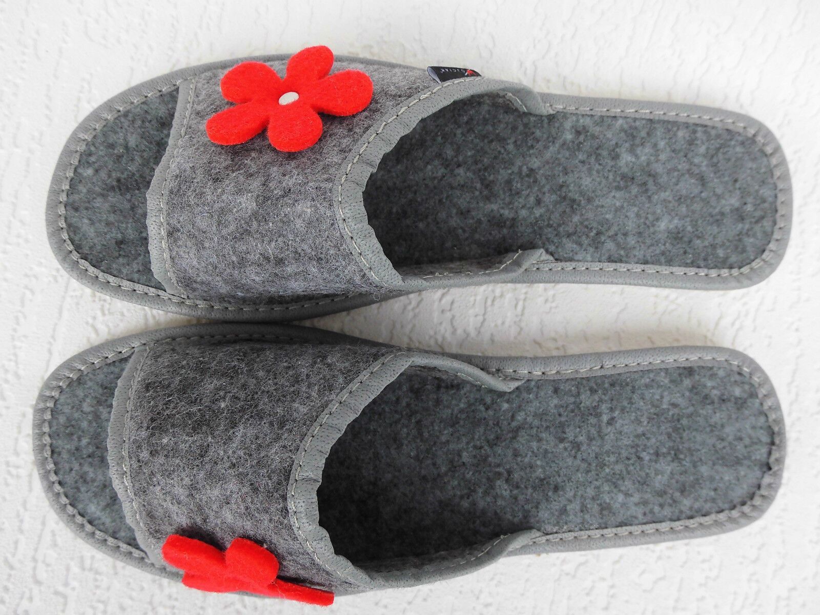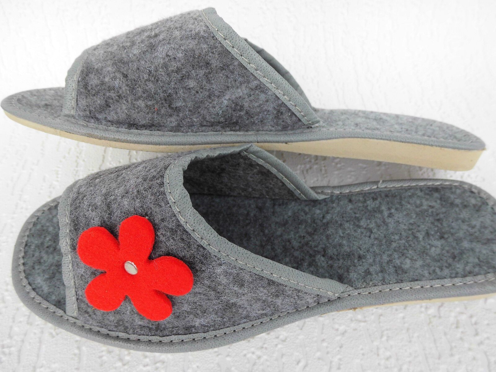 Sehr bequeme Hausschuhe aus WOLLFILZ Gr. 36 **** GRAU **** Die Hausschuhe bestehen innen aus echtem Wollfilz - atmungsaktiv die Schuhe haben normale Weite für Barfußlaufen haben die Schuhe richtige Größe wenn Sie doch die Socken anziehen möchten, ich empfehle Ihnen eine Nummer größerer zu kaufen Die