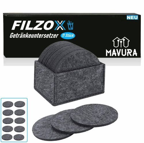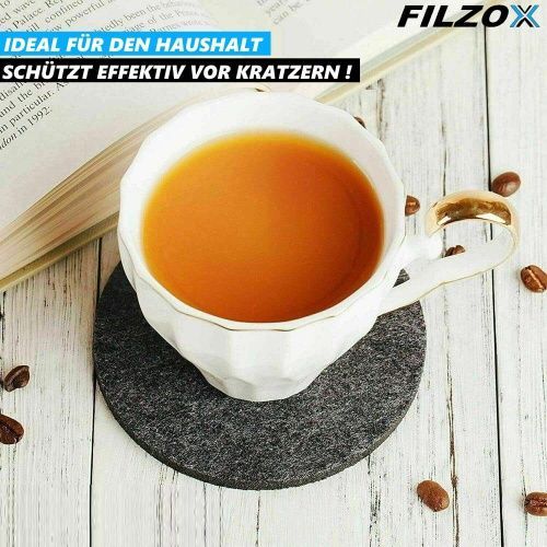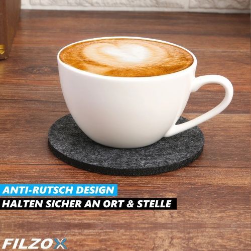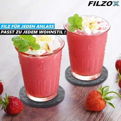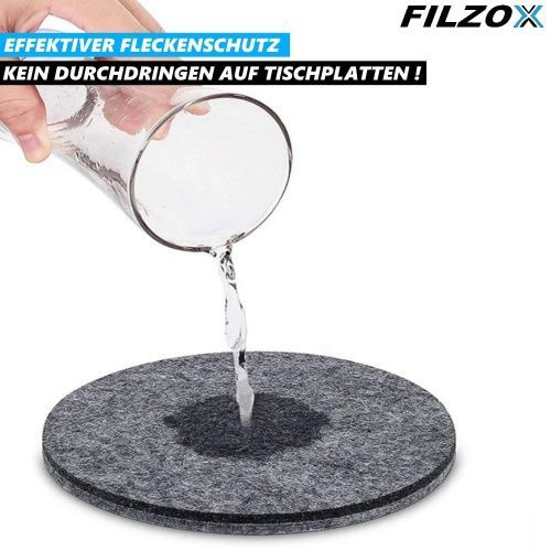 FILZOX Filz Untersetzer Set rund Premium Design Glasuntersetzer Getränke grau