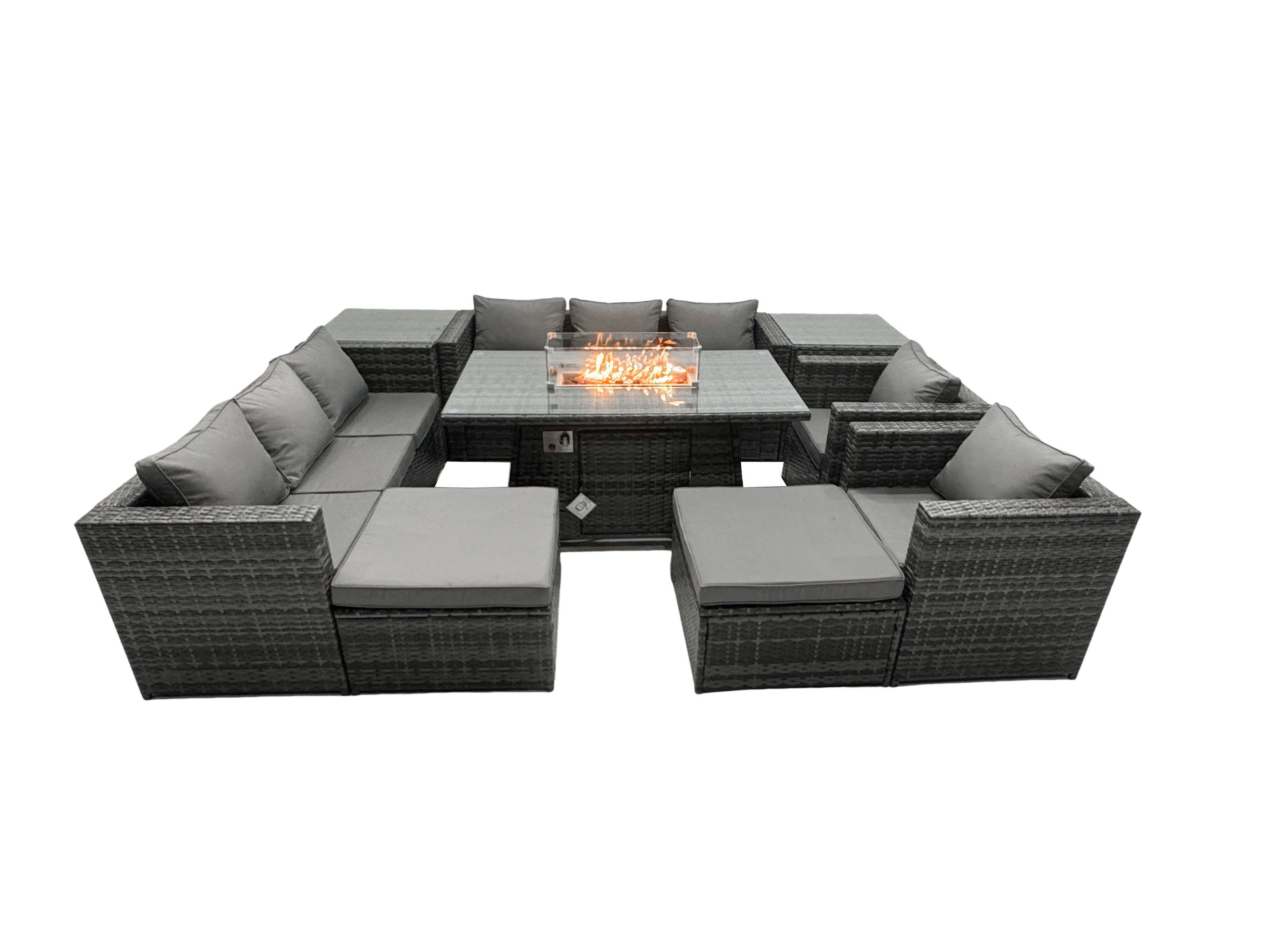 Fimous 10-Sitzer Garten Sofa Gas Feuertisch Set mit 2 Beistelltisch