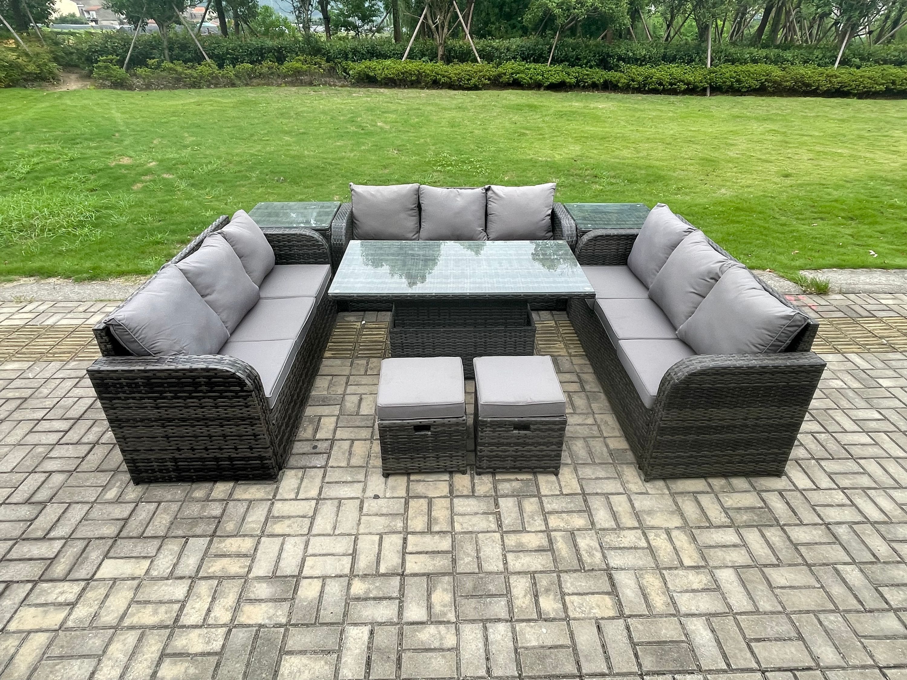 Fimous 11-Sitzer-Garten-Dining-Sets Rattan-Möbel-Lounge-Sofa mit 2-Beistelltischen