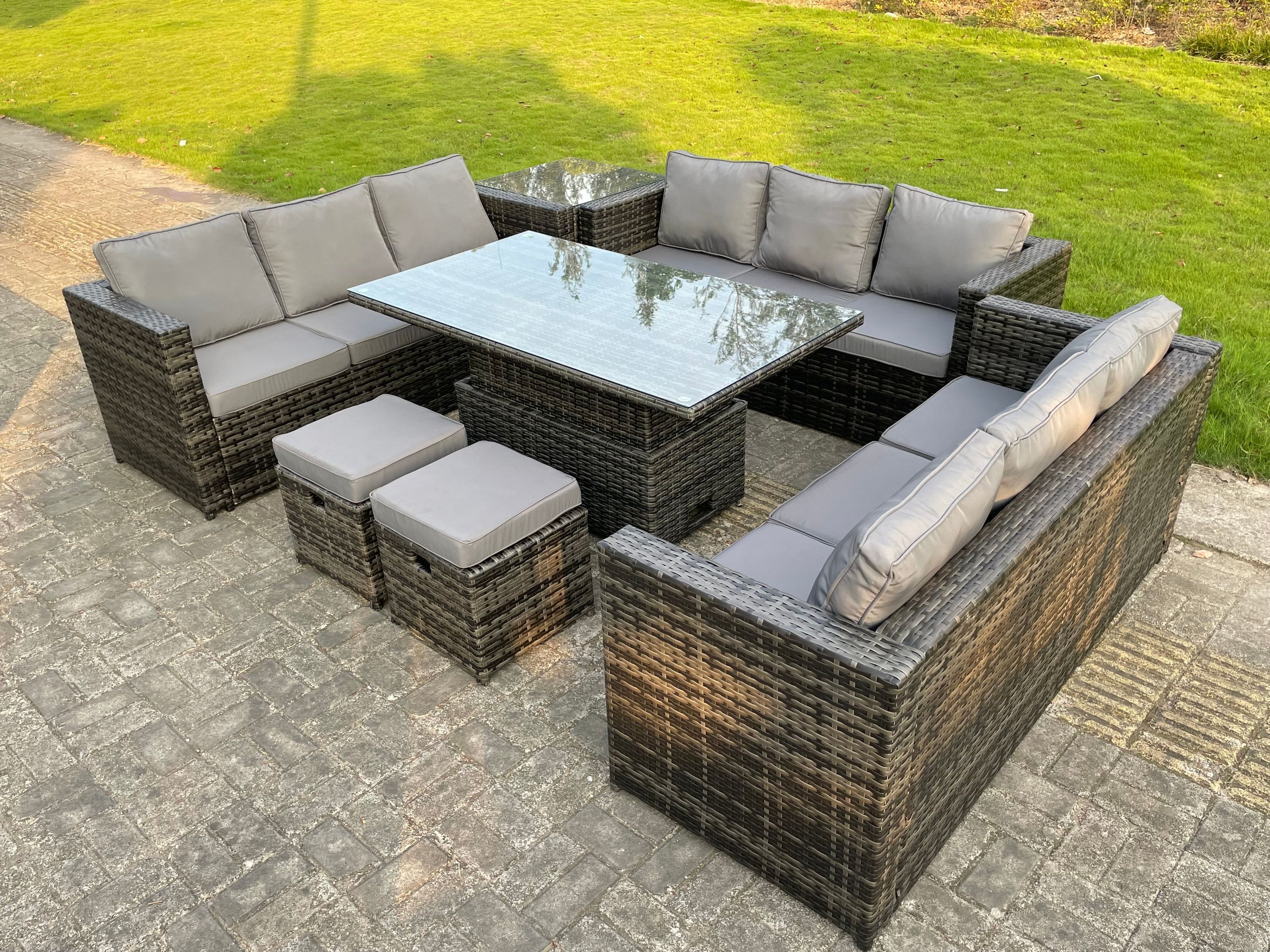 Fimous 11 Sitzer Outdoor Rattan Sofa Set Dunkelgrau Gemischt