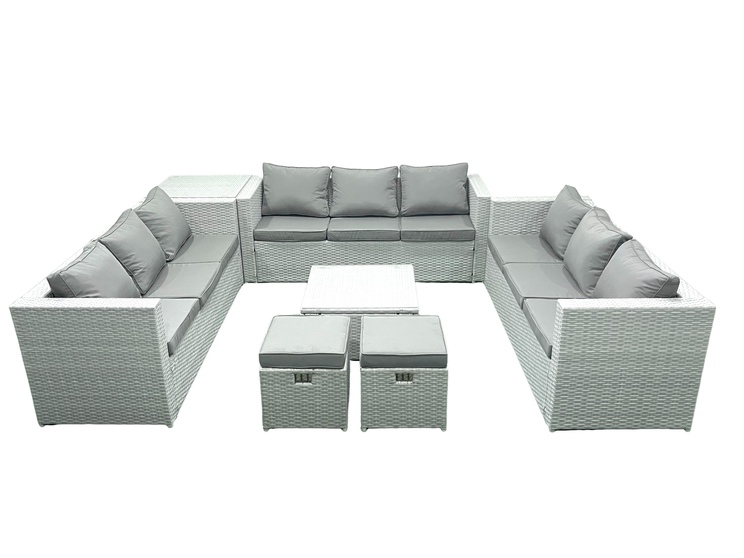 Fimous 11-Sitzer Rattan Garten Sofa Set mit 2 kleinen Hockern Beistelltisch