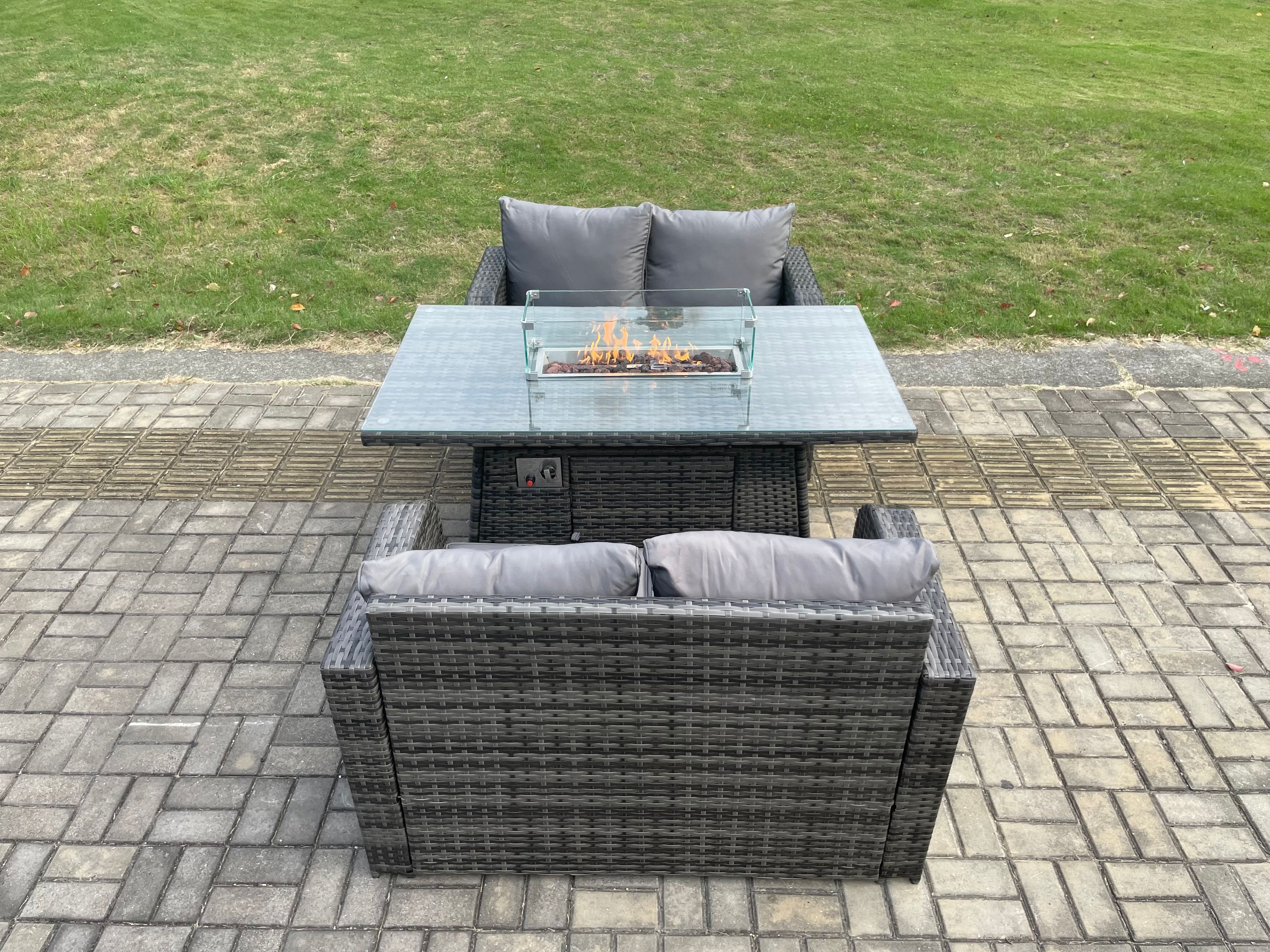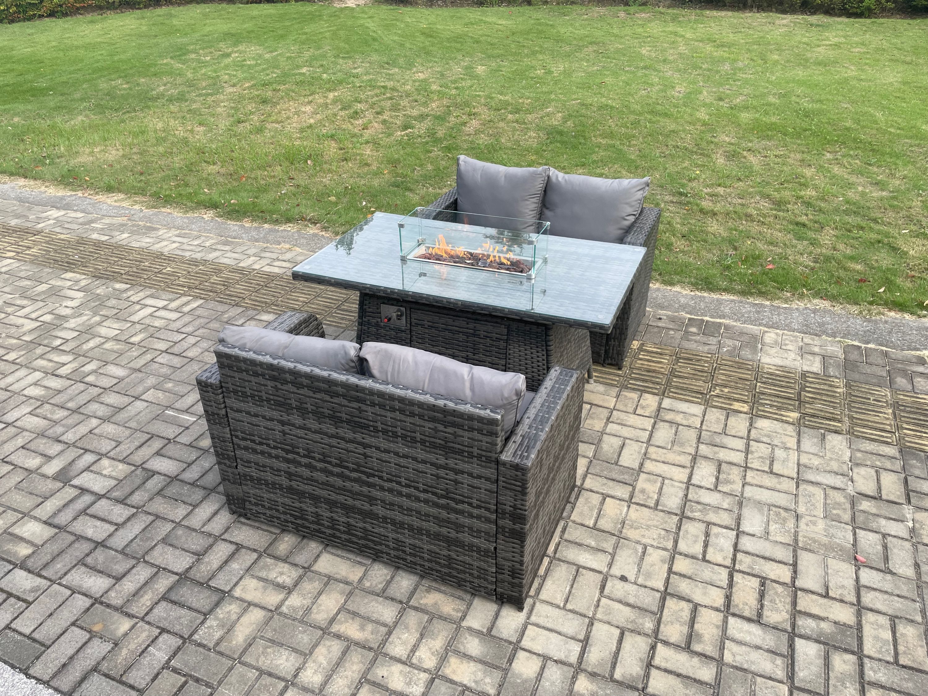 Fimous 4-Sitzer Gartengarnitur Polyrattan mit Gas Feuerstelle