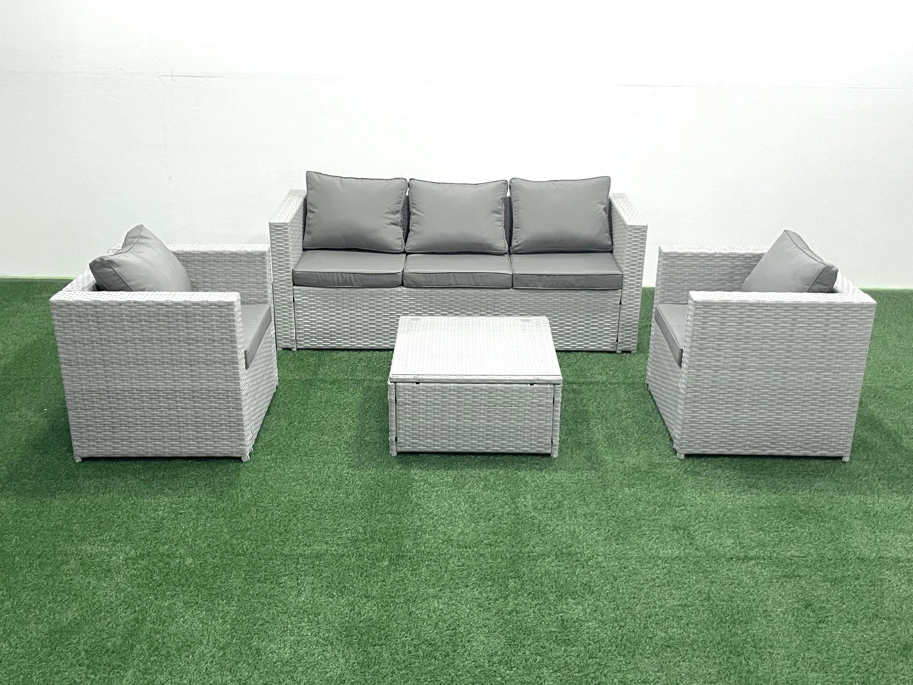 Fimous 5-Sitzer Polyrattan Gartenmöbel Set mit 3-Sitzer Sofa Hellgrau gemischt