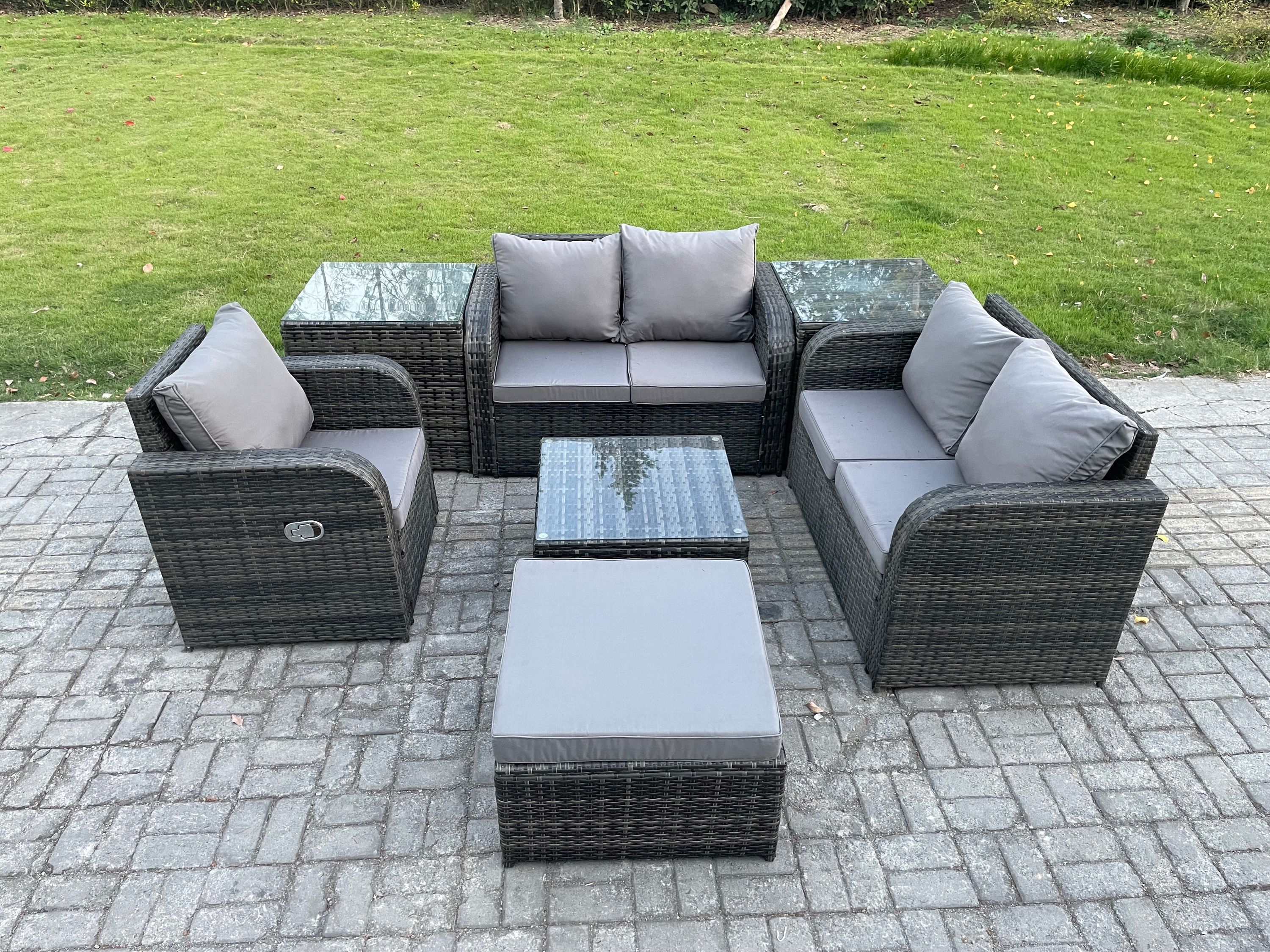 Fimous 6-Sitzer Möbe Gartenmöbel set fér den Balkon Terrasse lounge set Dunkelgrau