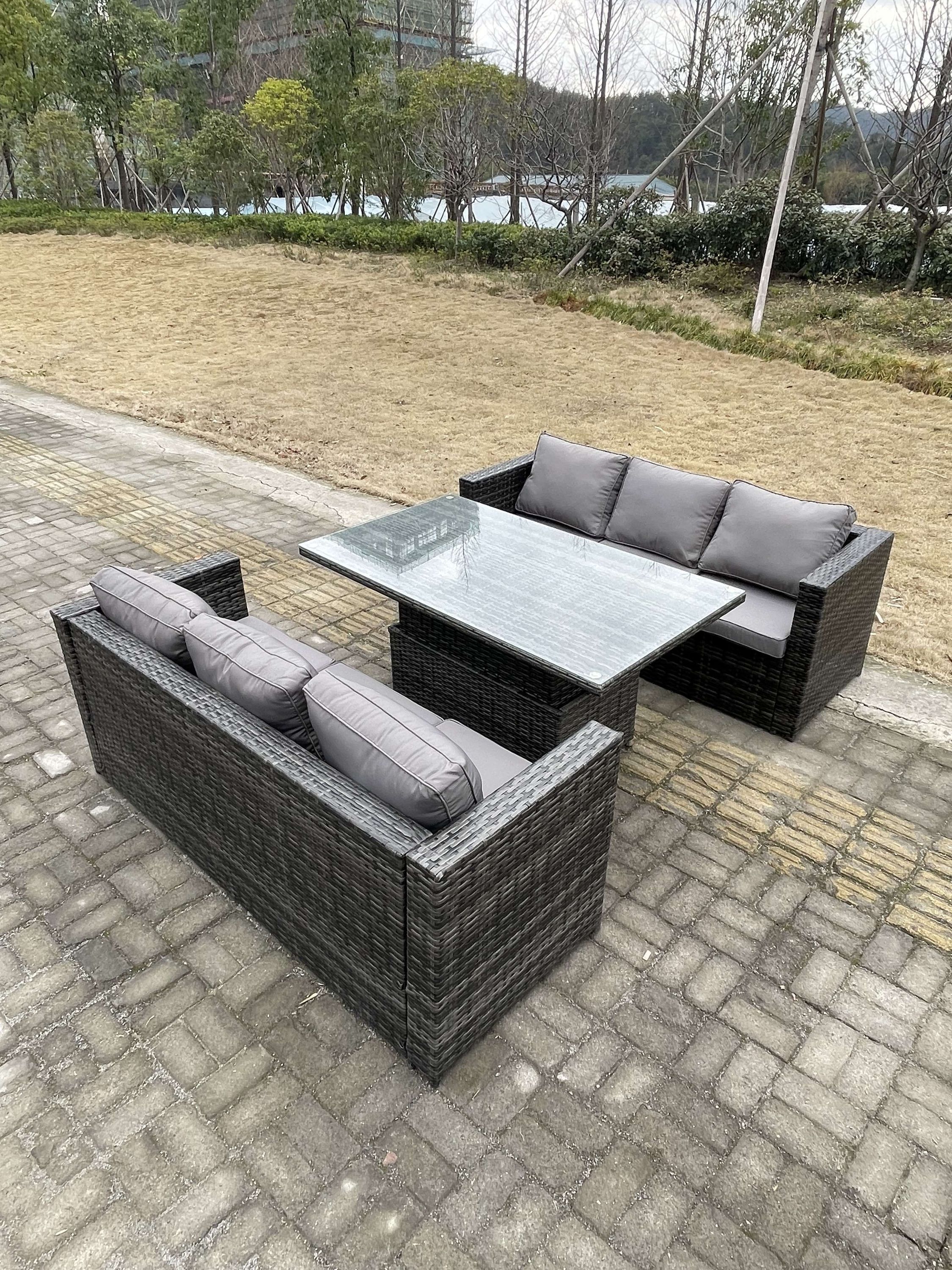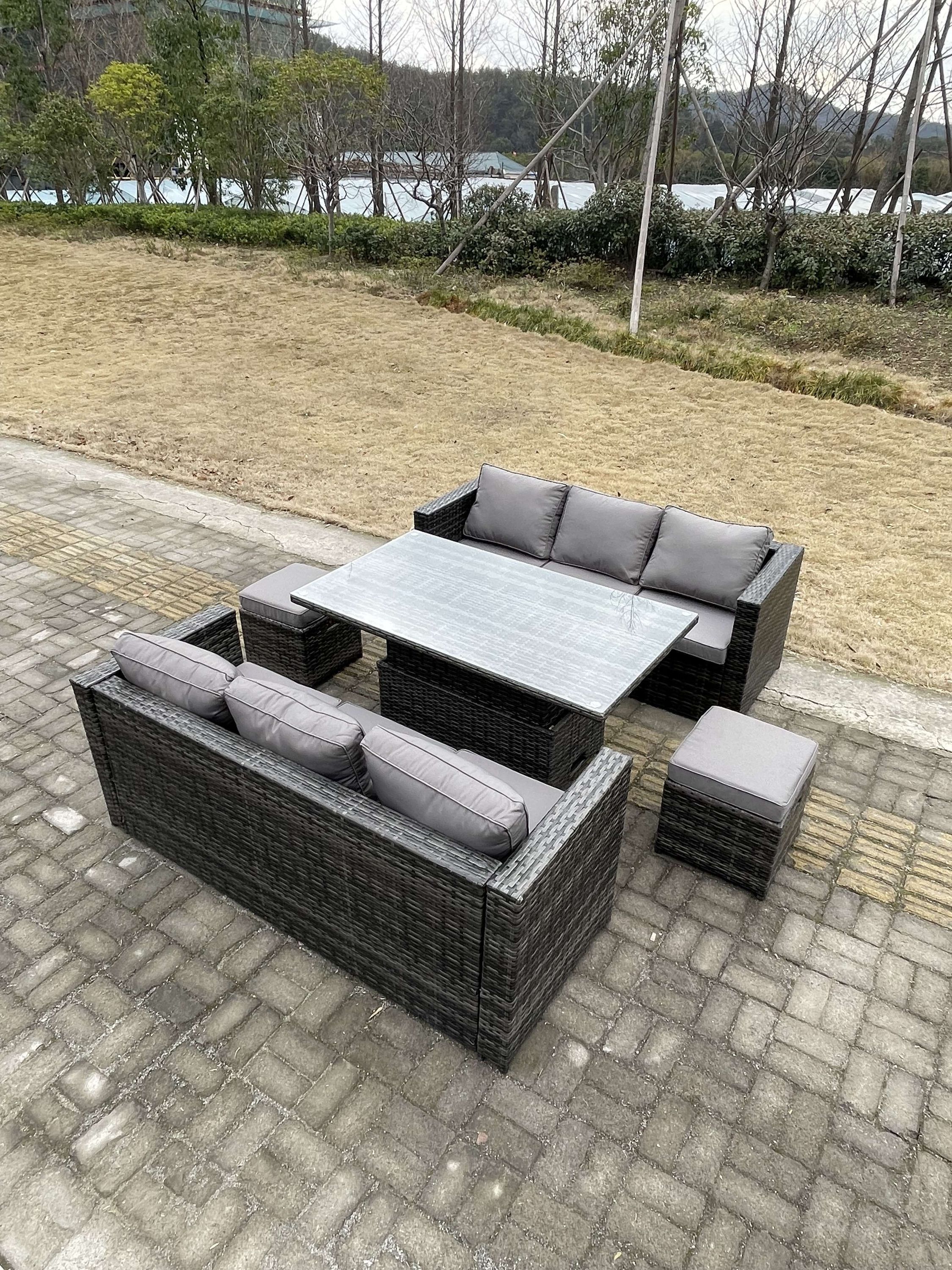 Fimous 6-Sitzer Rattan Lounge Sofa Set Gartenmöbel