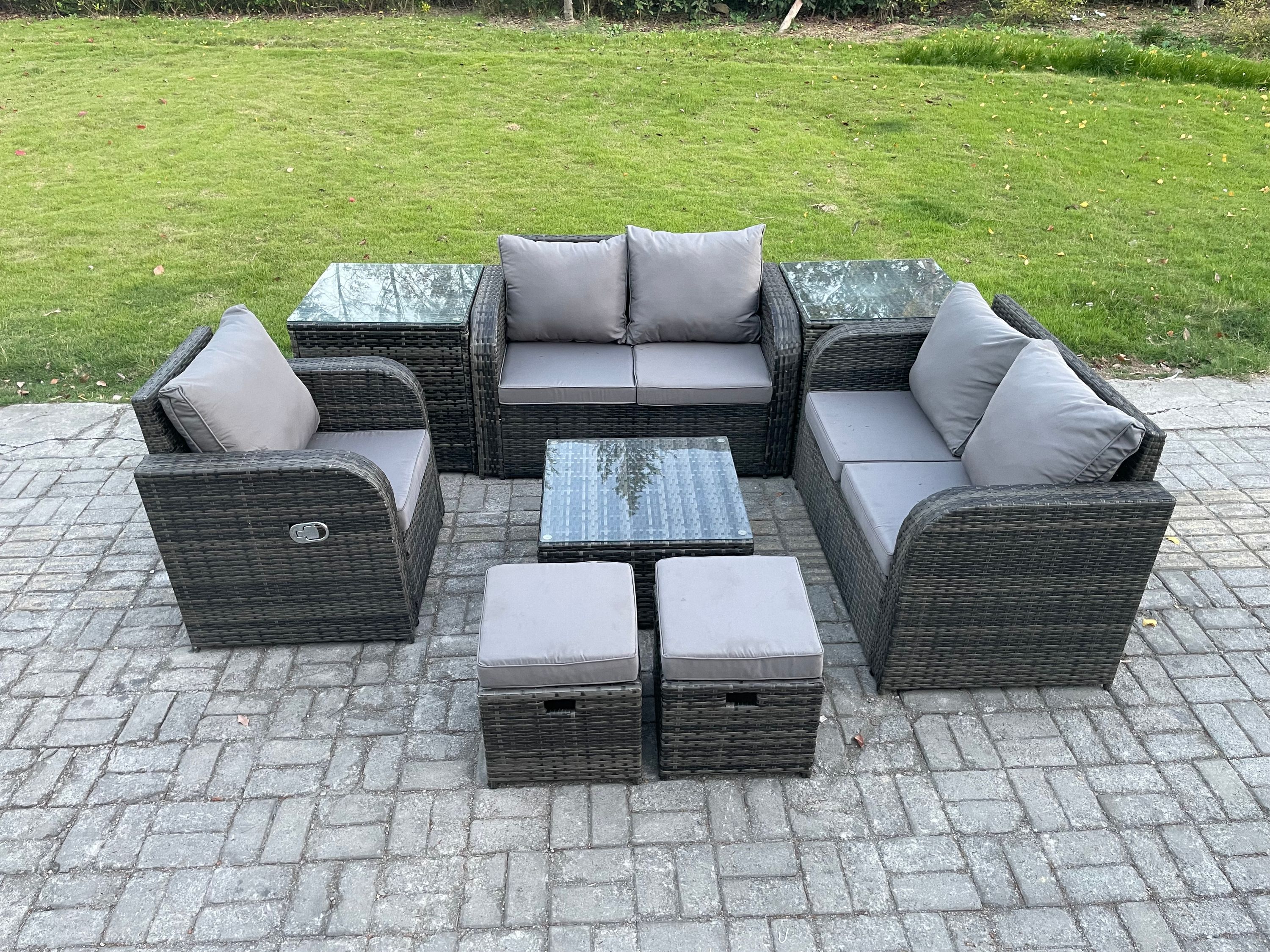 • Fimous Rattan Gartenmöbel Set mit Gartensofa 9-Sitzer Dunkelgrau