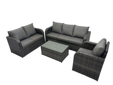 • Fimous Rattan Gartenmöbel Set im Balkon 6-Sitzer mit 3-Sitzer Sofa