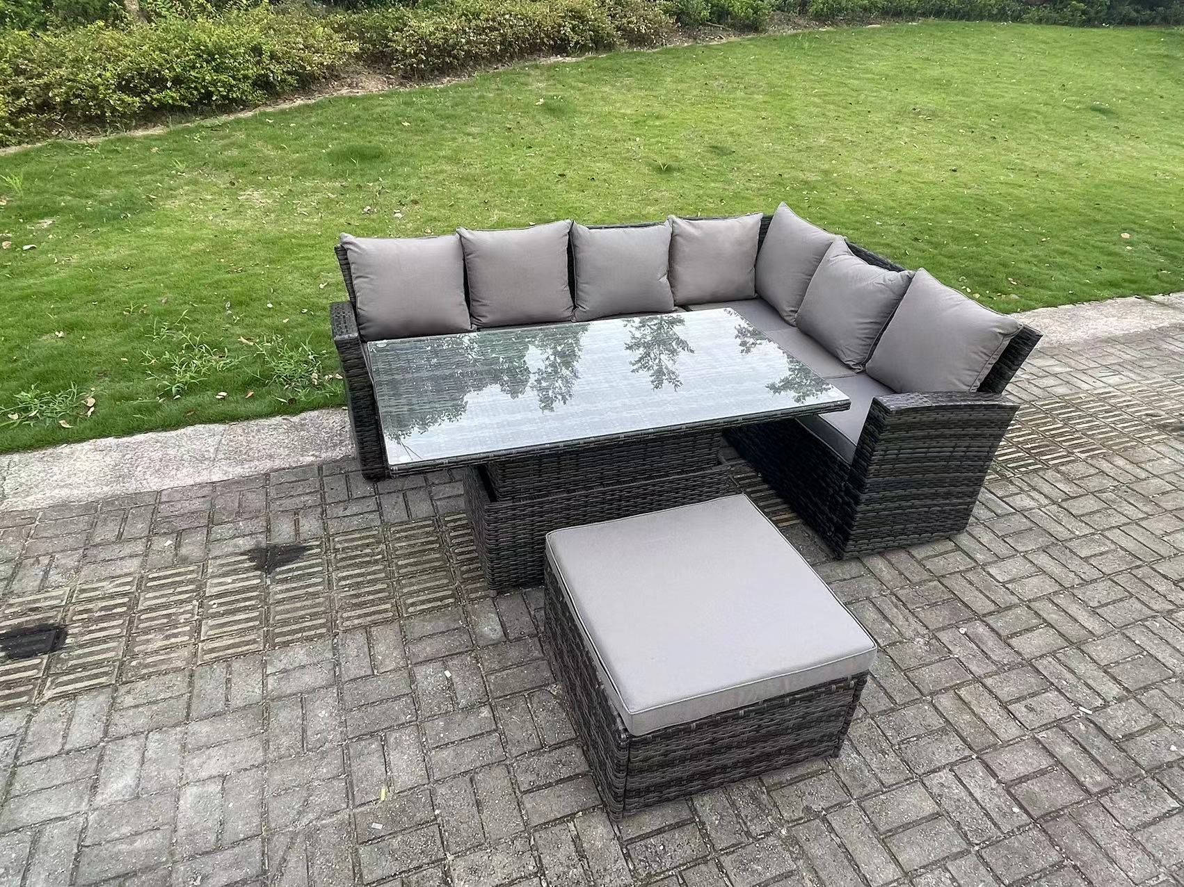 Fimous 7-Sitzer Rattan im Freien Hohe Récken Einstellbare Steigende Esstisch Set