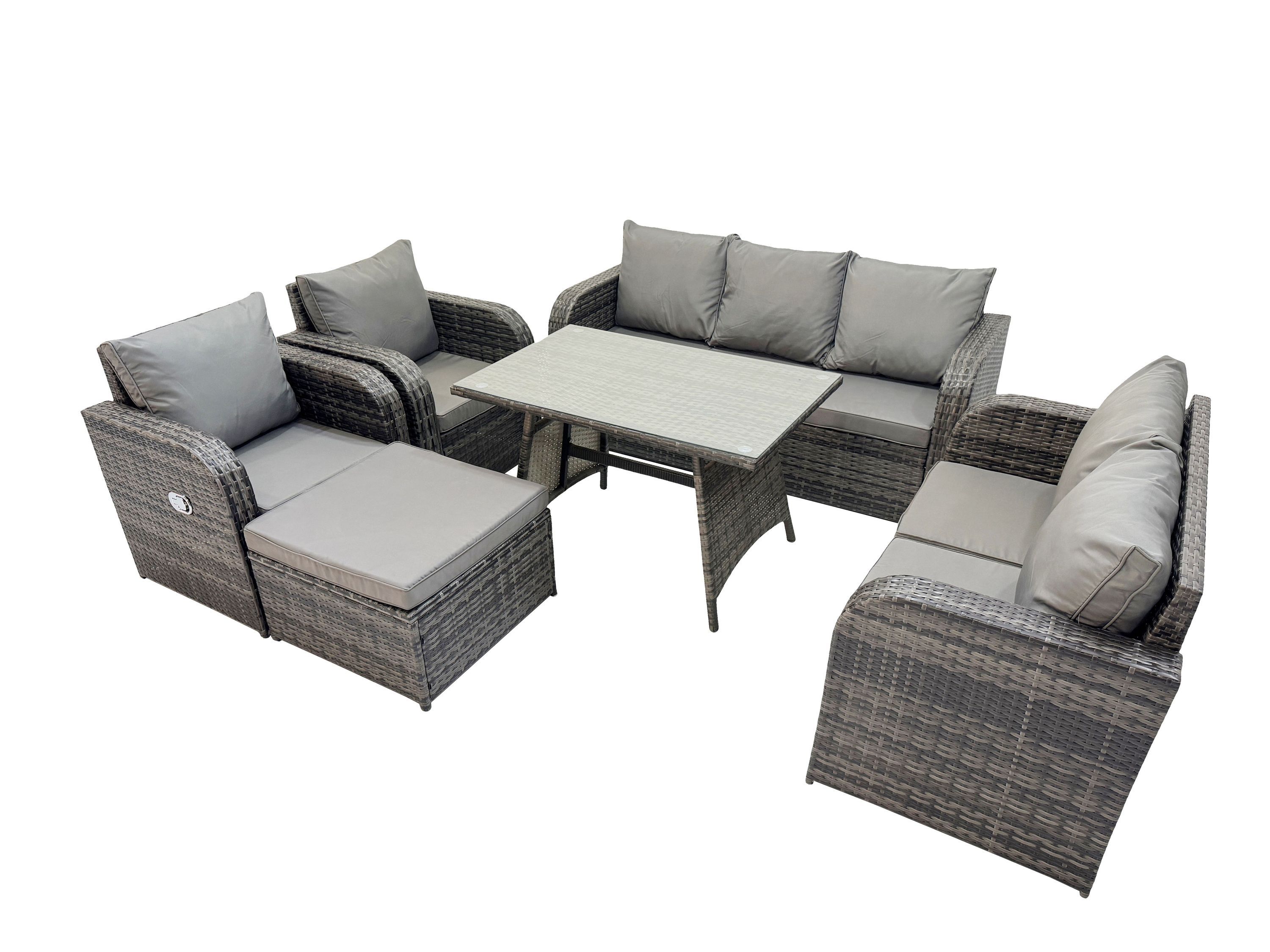 Fimous 8-Sitzer Hoher Récken Polyrattan Sofa Set Gartenmöbel Esstisch Set