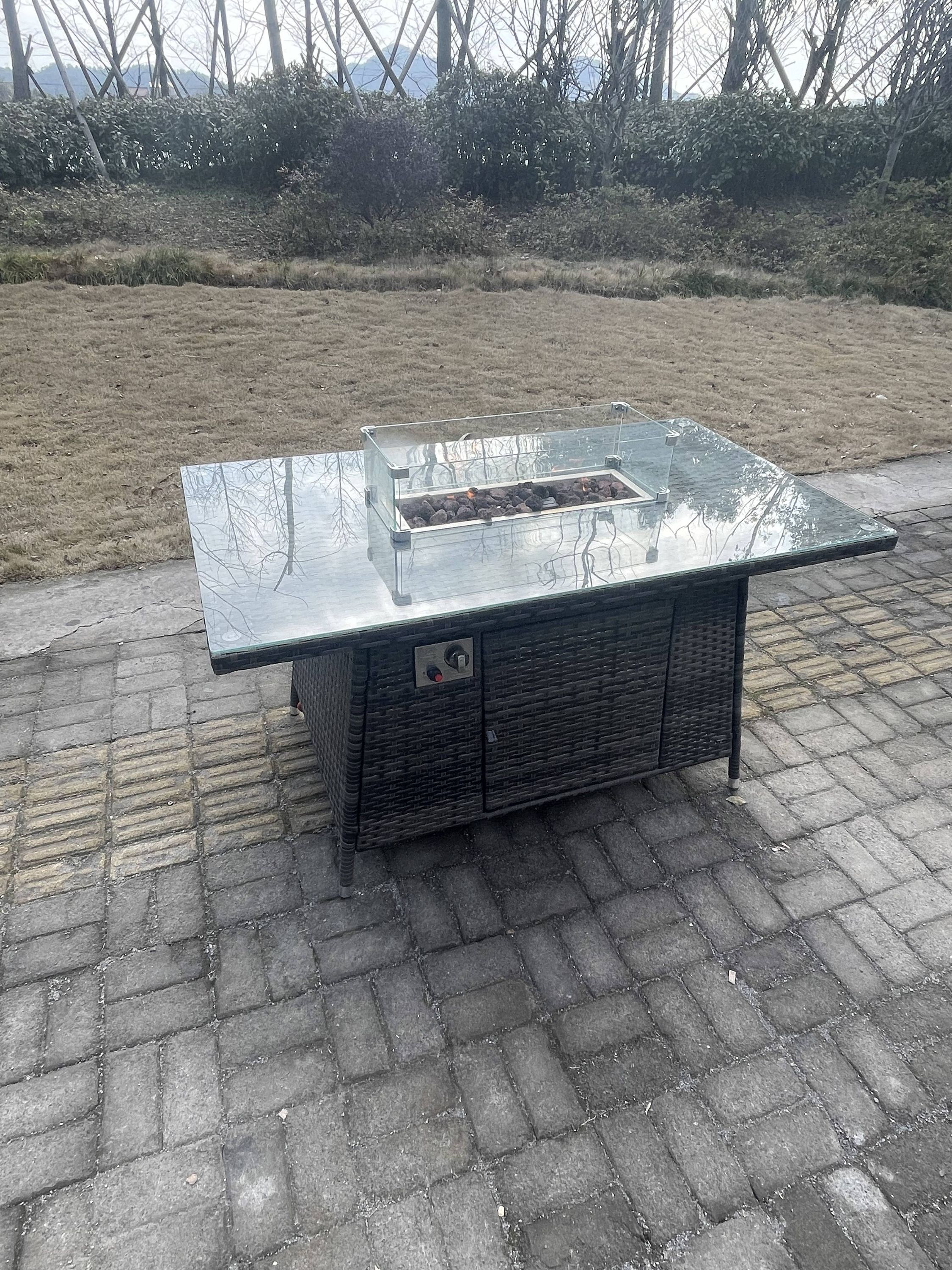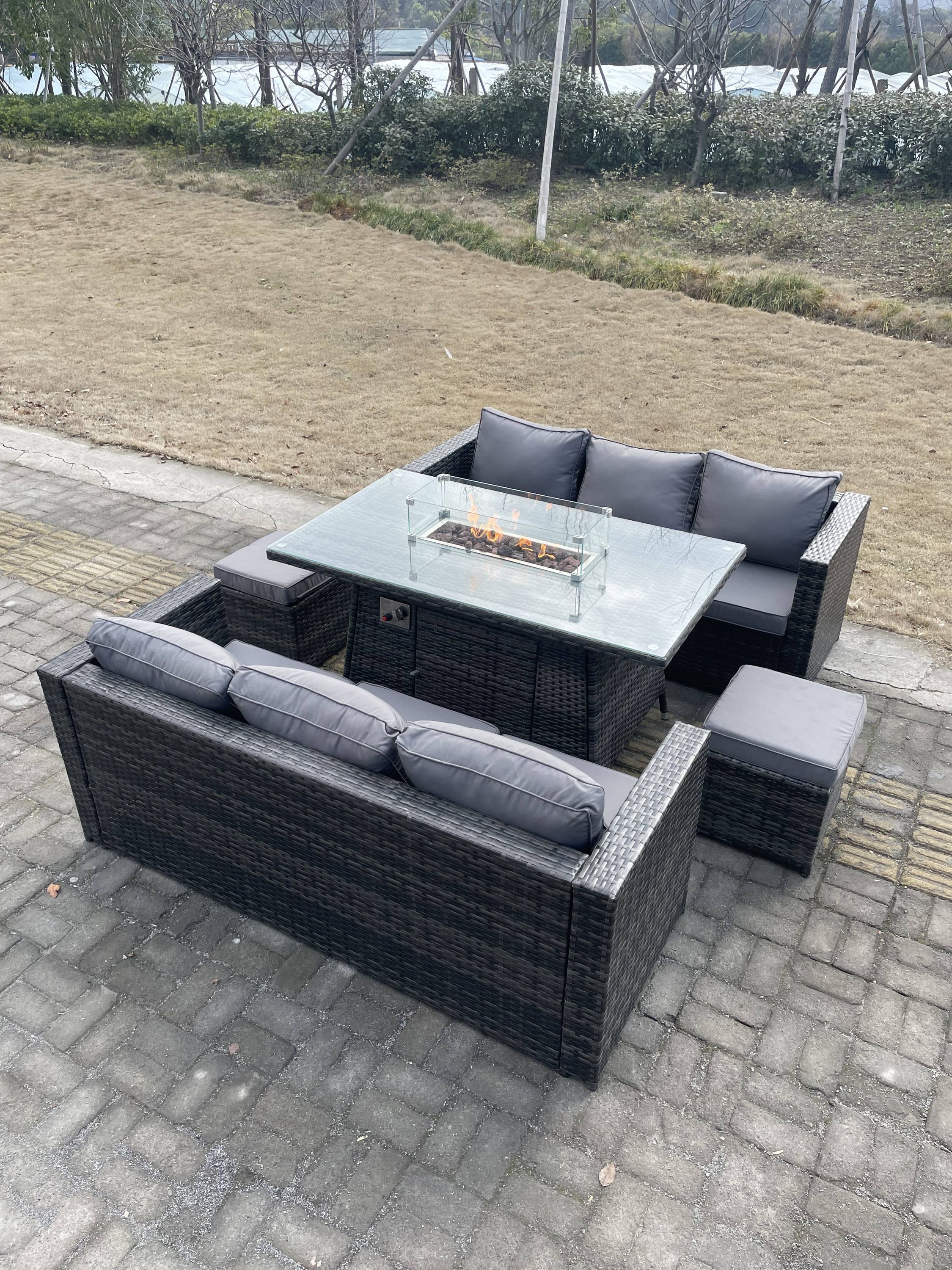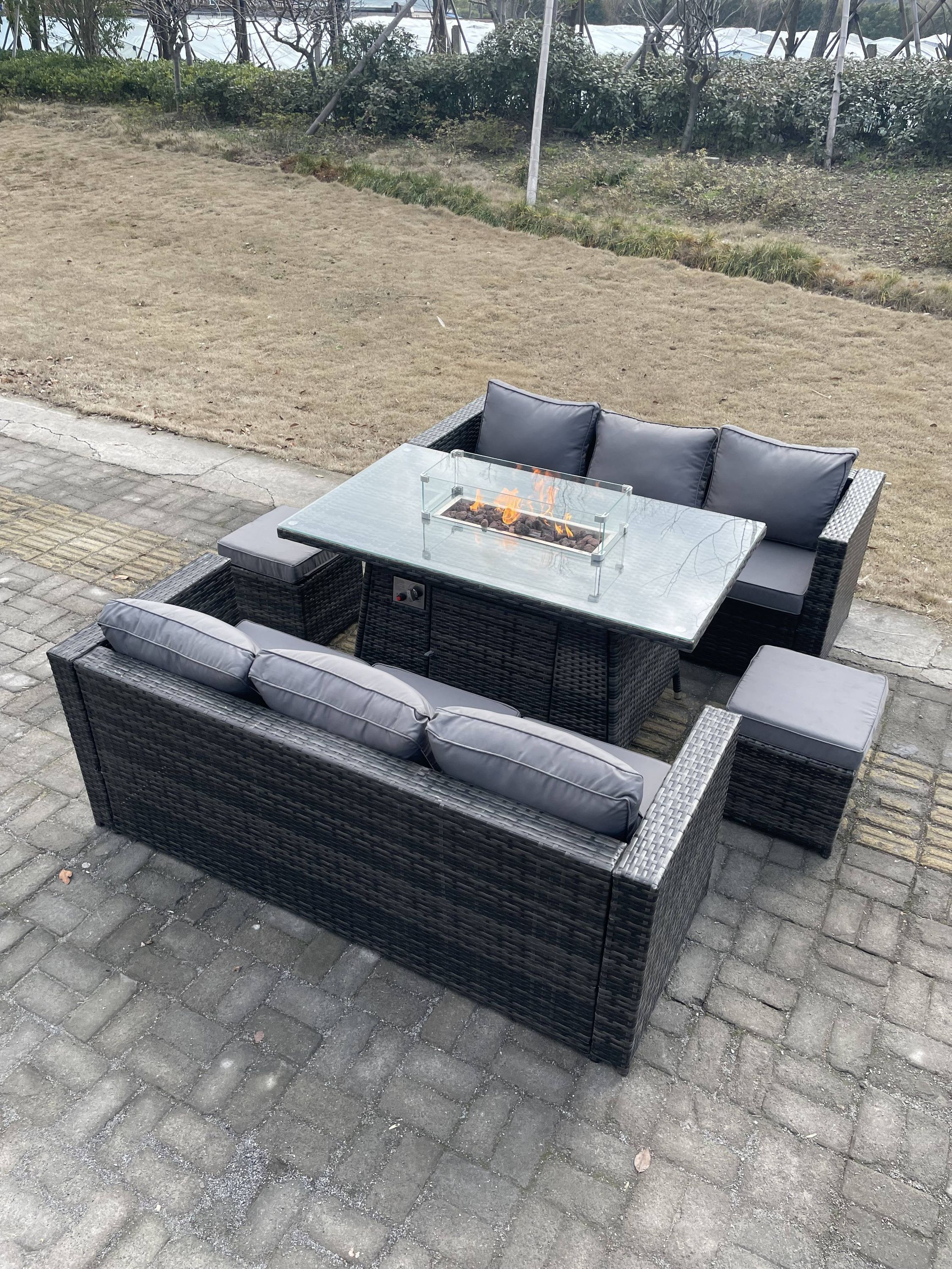 Fimous 8-Sitzer Outdoor Rattan Gartensofa Set Gartenmöbel Gas Feuerstelle Tisch Set