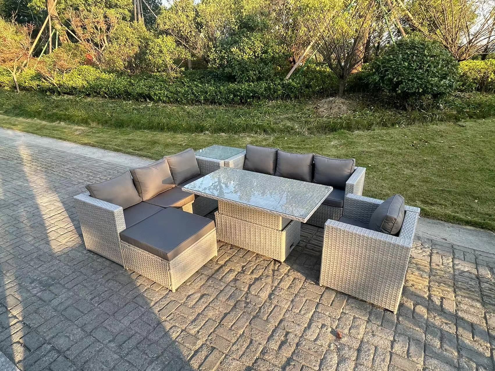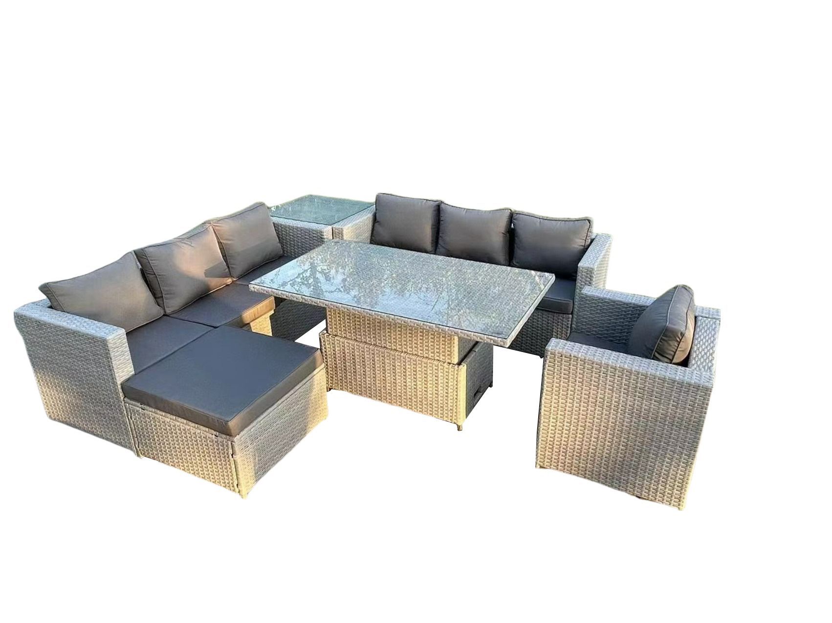 Fimous 8-Sitzer Polyrattan Essgruppe Gartenmöbel Set Höhe verstellbar Esstisch Set