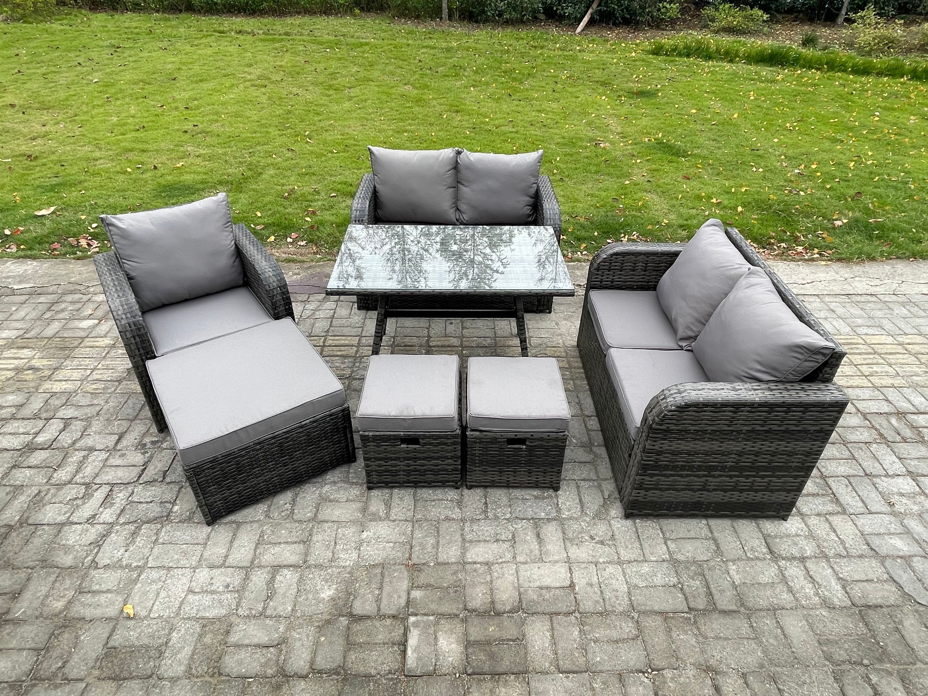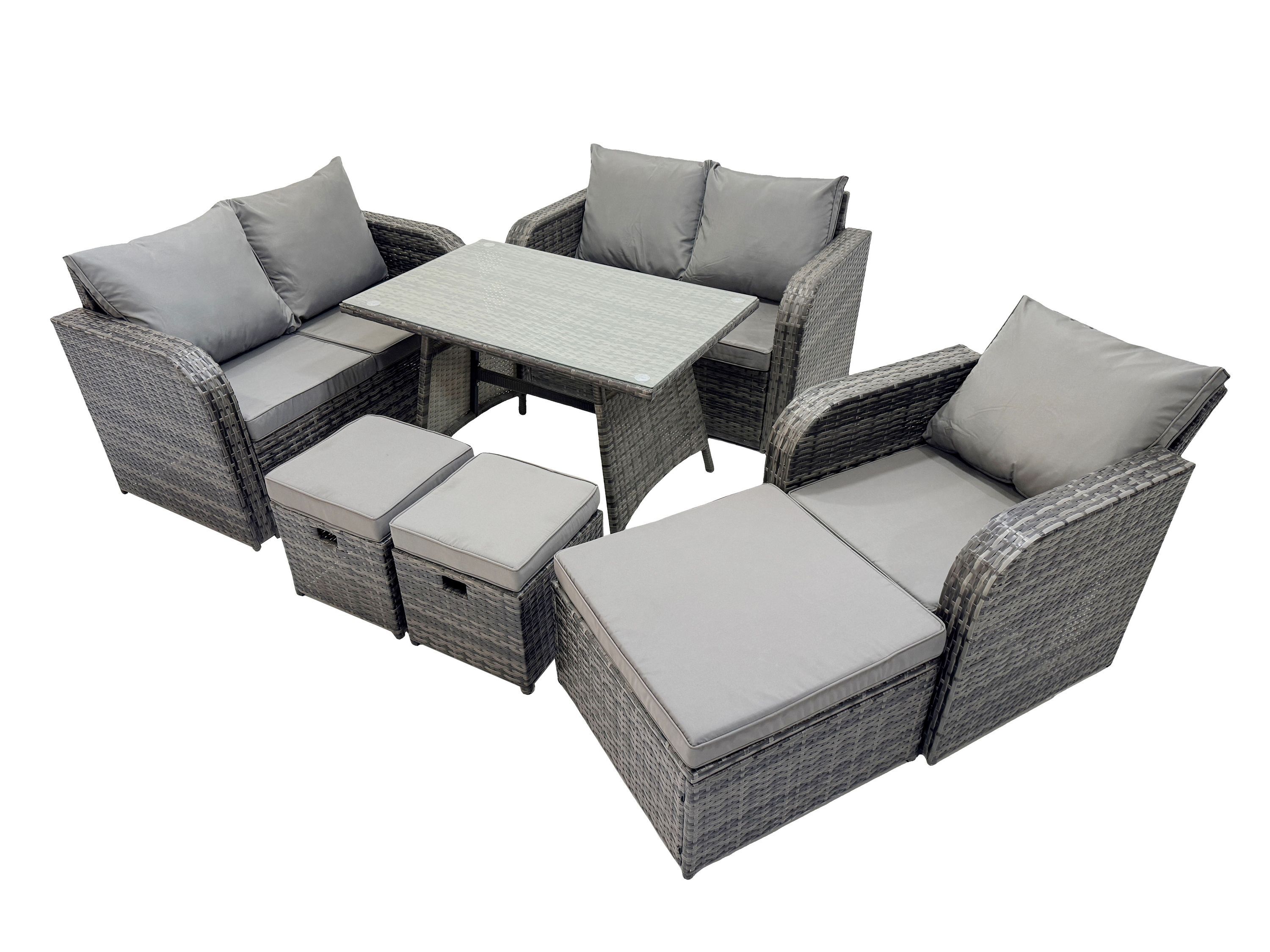 Fimous 8-Sitzer Polyrattan Gartenmöbel Set mit 3 Hockern