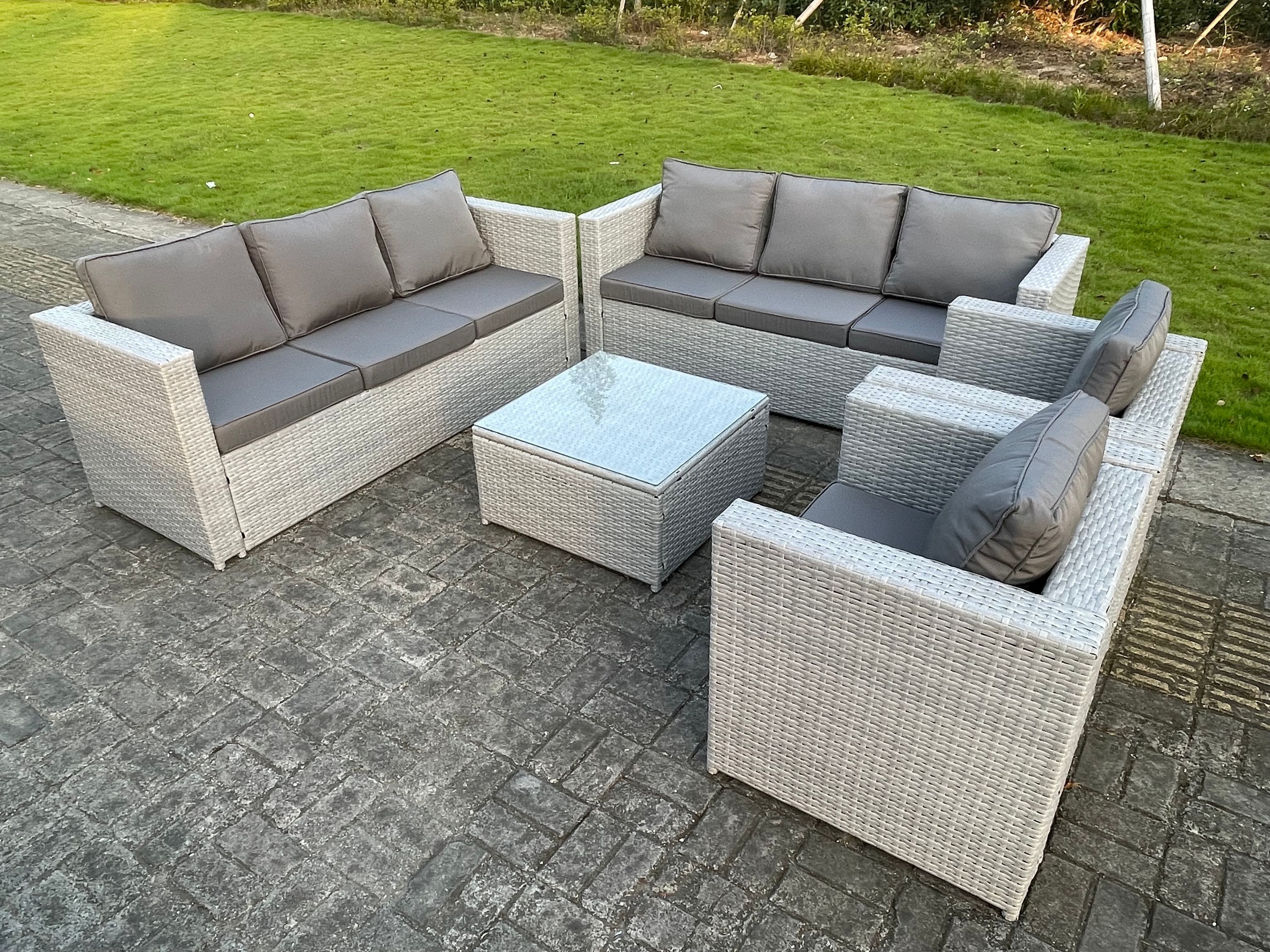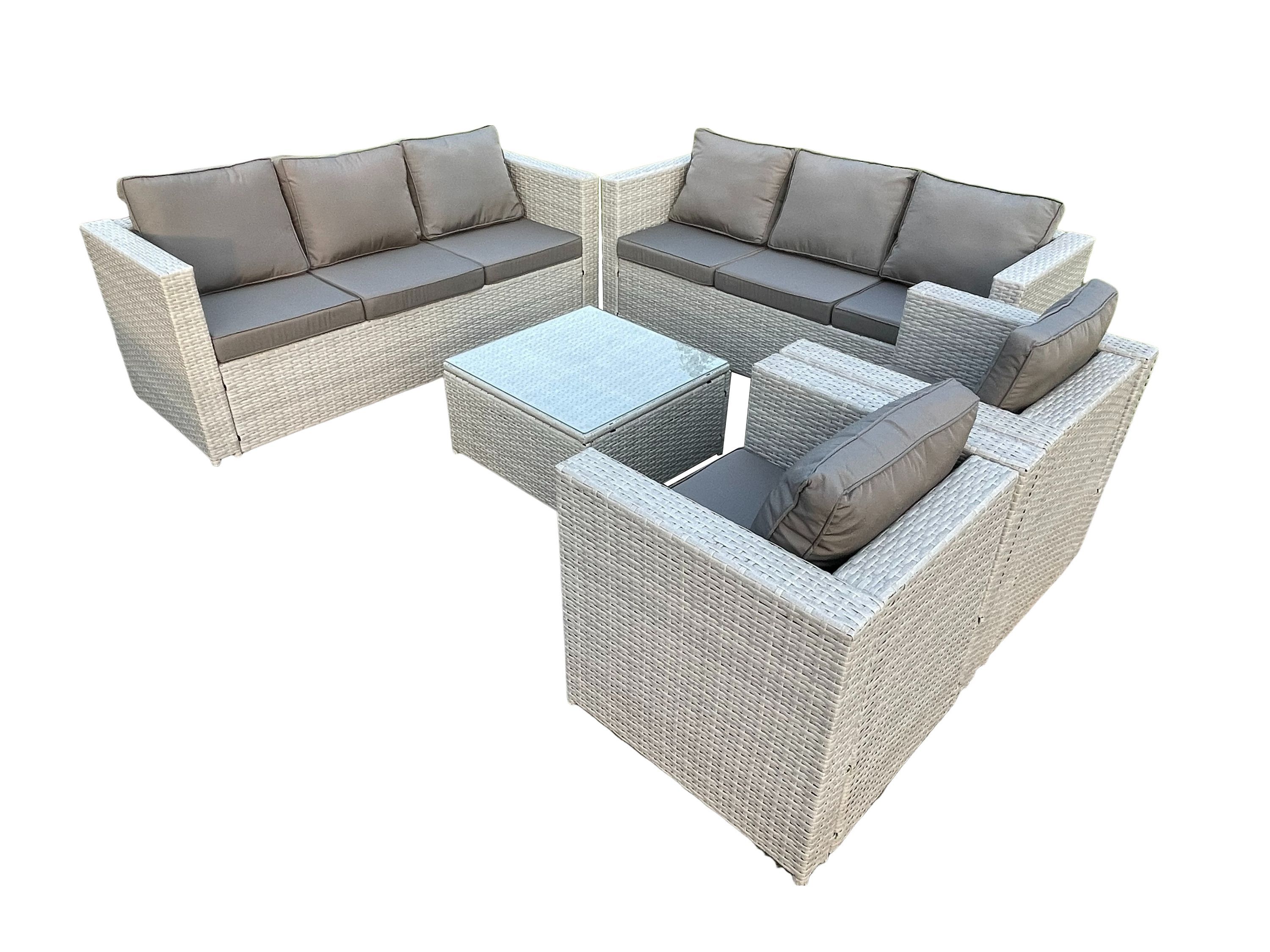 Fimous 8-Sitzer Rattan Gartenmöbel Set Rattan Sofa Set mit 3-Sitzer Sofa Couchtisch