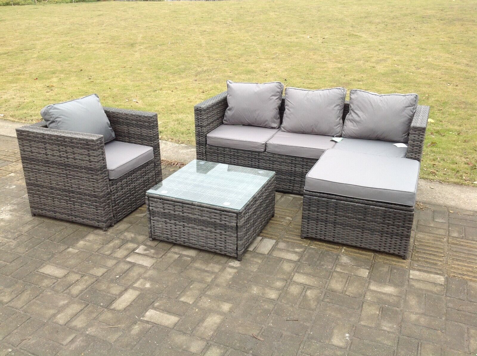 Fimous Gartenlounge Sofa Set 5-sitzer Rattan Gartenmöbel Gartensofa Couchtisch Hocker