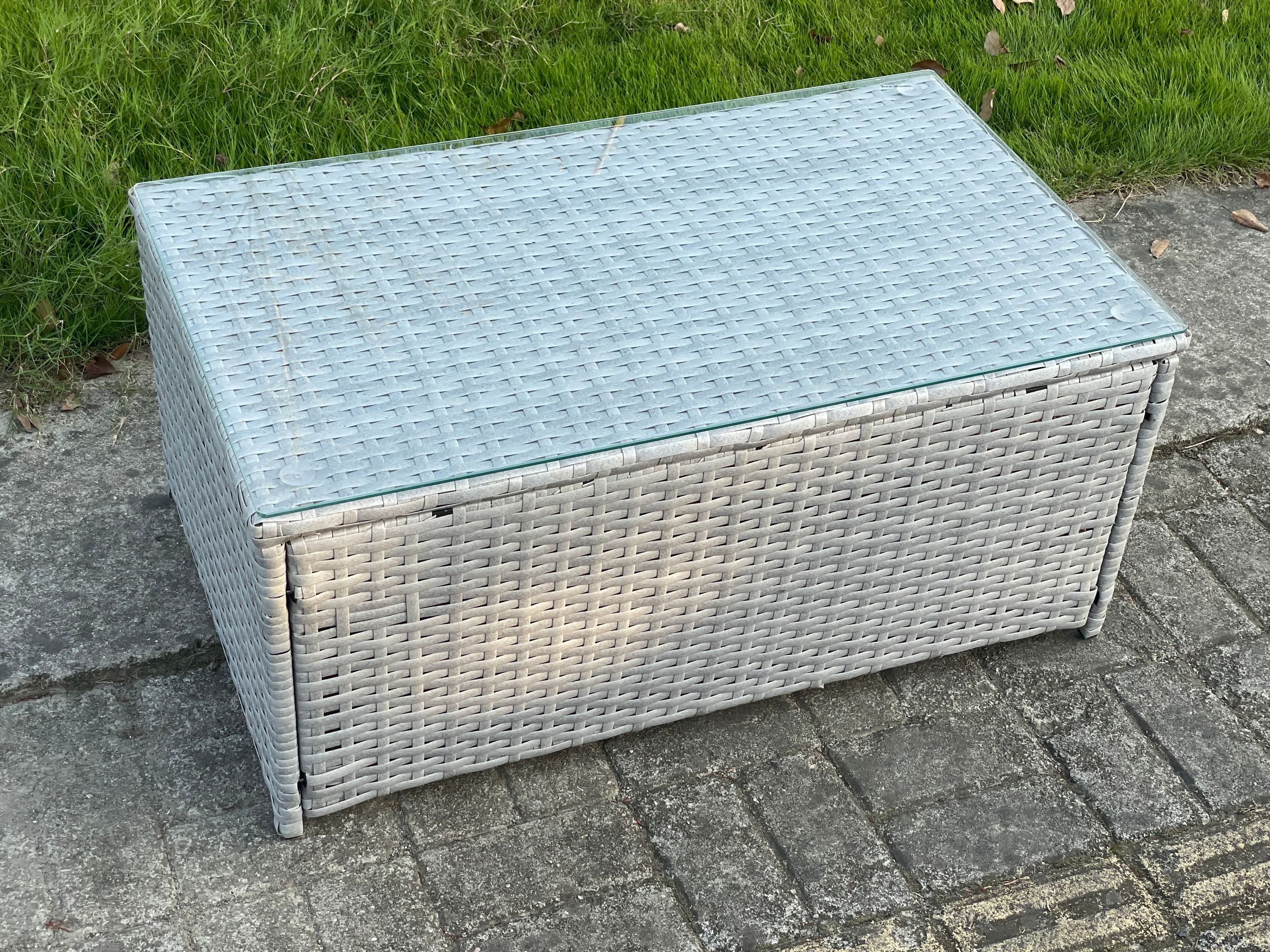 Fimous Gartenmöbel im Freien Rechteckig Couchtisch Helles Grau Polyrattan Teetisch