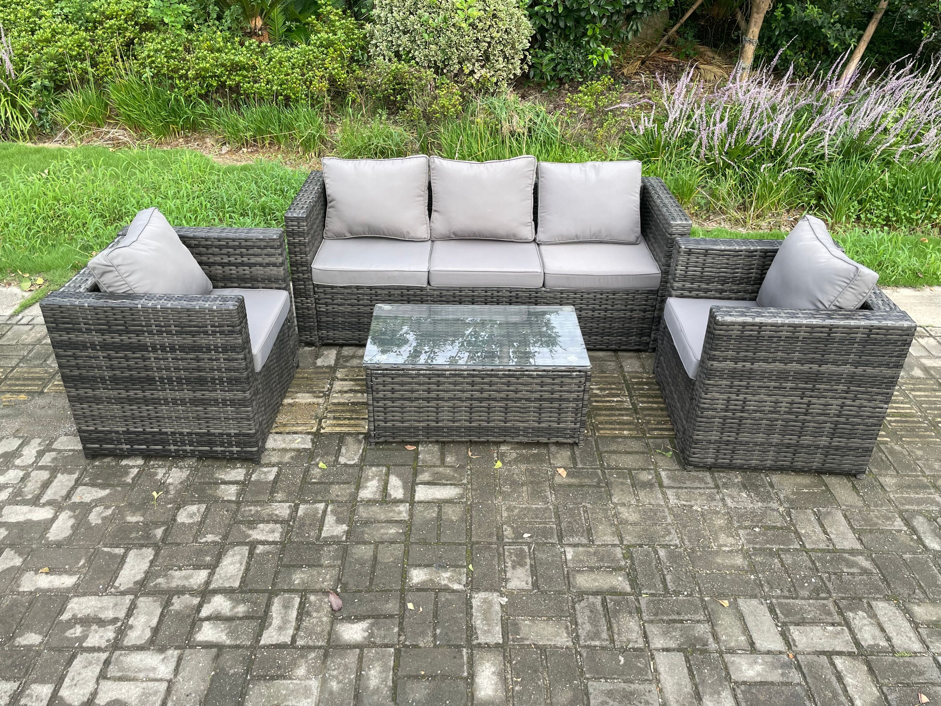 Fimous Gartenset im Freien mit Couchtisch Polyrattan 5-Sitzer Dunkelgrau