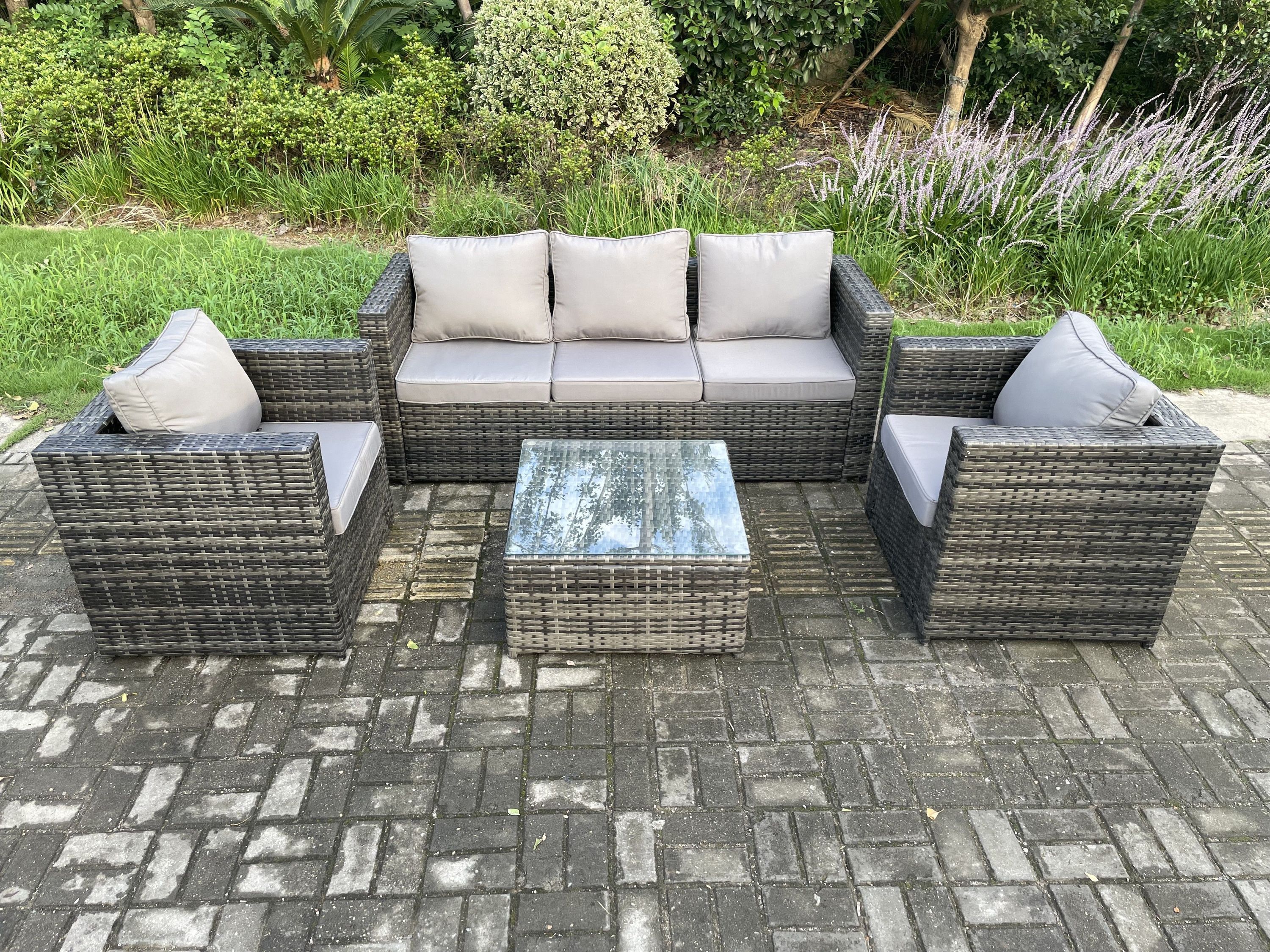 Fimous Gartenset im Freien mit Couchtisch Polyrattan Dunkelgrau 5-Sitzer